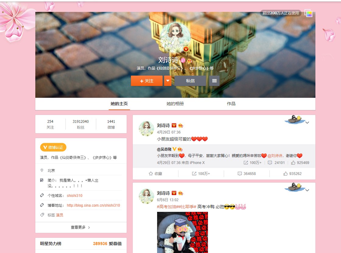 Lưu Thi Thi đang có 31,9 triệu fan.