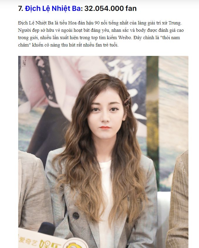 Các fan của Địch Lệ Nhiệt Ba cũng bày tỏ sự tức giận trước thông tin sai lệch khi khổ chủ đã có tận 63,7 triệu người hâm mộ nhưng báo Việt chỉ đề cập “số cũ mèm” 32 triệu người - cắt giảm tận một nửa số liệu.