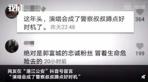 Dân mạng sau đó đã ở trên trang cá nhân của công an Trạm Giang để lại lời nhắn: “Buổi live-show lại trở thành cơ hội tốt cho mấy chú công an bắt tội phạm”, “Người đó chắc chắn là fan trung thành của Quách Phú Thành, mạo hiểm cả mạng sống để ra ngoài”. Có người còn bình luận: “Tứ đại thiên vương cùng làm live-show chắc còn bắt được nhiều hơn nữa”.
