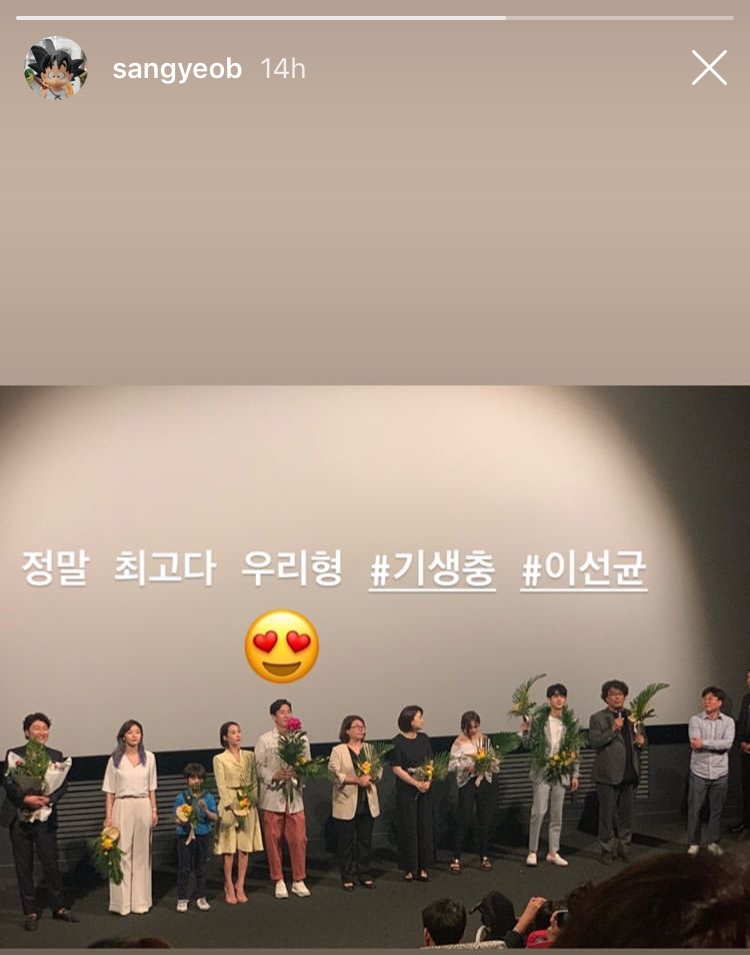 Vào tối ngày 28/05 vừa qua, buổi công chiếu VIP của tác phẩm điện ảnh Parasite (Ký sinh trùng) - bộ phim thắng giải Cành cọ vàng tại LHP Cannes 2019, với sự tham của “ông hoàng phòng vé” Song Kang Ho, Lee Sun Kyun, Cho Yeo Jung, Choi Woo Sik, Park So Dam…đã được tổ chức tại CGV Yongsan Ipark Mall ở Yongsan-gu, Seoul.