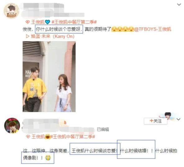 Tuy nhiên, những “cơn gió” gần đây dường như đã có chút đổi hướng. Có rất nhiều người hâm mộ trên Weibo bày tỏ sự hy vọng Vương Tuấn Khải sẽ sớm hẹn hò. Rốt cuộc ý định của những người này là gì? Đừng nói điều đó một cách dễ dàng chứ, nếu cậu bé thực sự “rơi vào lưới tình”, lúc đó các bạn không thể oán trách được bất cứ ai đâu, mà chỉ có thể ngồi một góc mà khóc sụt sịt suốt đêm đấy!