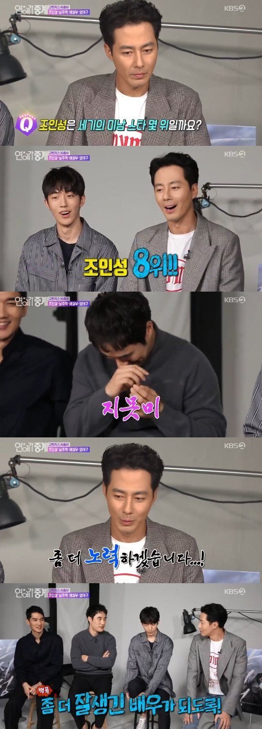 Tuy nhiên, Jo In Sung đã bị sốc khi thấy mình thực sự đứng ở vị trí thứ 8 và MC của chương trình nhận xét: “Có vẻ như bạn bị sốc hơn tôi tưởng“, khiến nam diễn viên Bae Sung Woo ngồi bên cạnh bật cười. Jo In Sung giải thích: “Tôi nghĩ tôi hơi quá tự mãn. Tôi vẫn còn nhiều thiếu sót, nên tôi sẽ làm việc chăm chỉ hơn. Tôi sẽ là một diễn viên tự cải thiện bản thân mình.” Ngay sau đó, Bae Sung Woo nói đùa: “Bạn nên trở thành một diễn viên đẹp trai hơn. Tổn thương này thật lớn.”