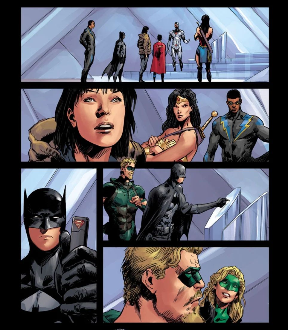 May thay, Damian Wayne (người lần đầu xuất hiện với tư cách Robin, ngay đã trở thành Batman mới khi Bruce Wayne qua đời) đã truy cập vào được những file trong máy tính của người bố của mình. Trong đó là tất cả những thông tin mà họ cần để đánh bại tất cả những người trong nhóm Justice League. Oliver Queen - Green Arrow hoàn toàn không bất ngờ trước kế hoạch của Batman cũng như những gì mà anh chuẩn bị, thứ khiến anh ngạc nhiên đó chính là mình không có tên trong danh sách đó. Damian đã cho anh biết rằng, Batman thật sự không hề có kế hoạch để khống chế Mũi tên xanh.