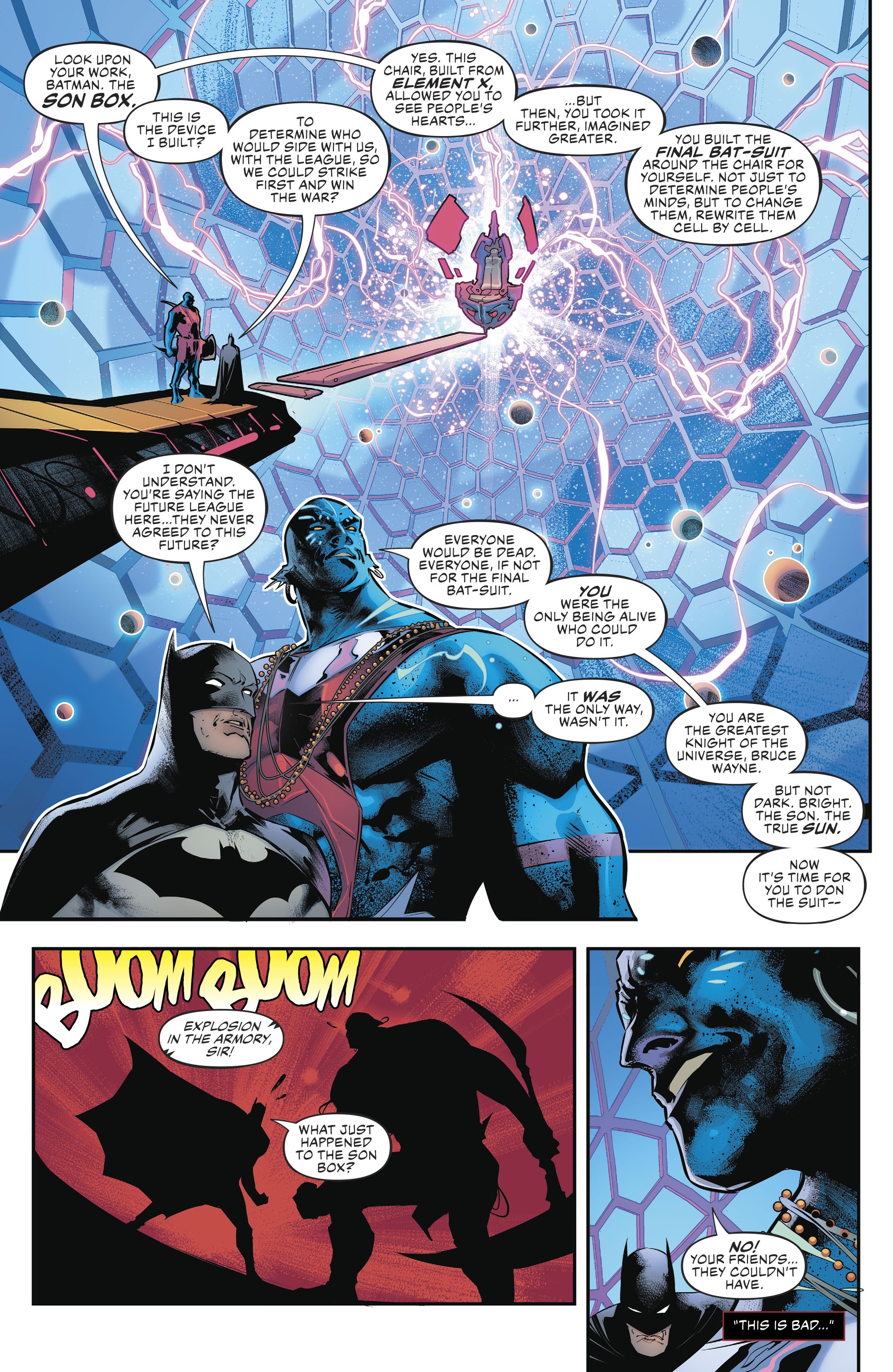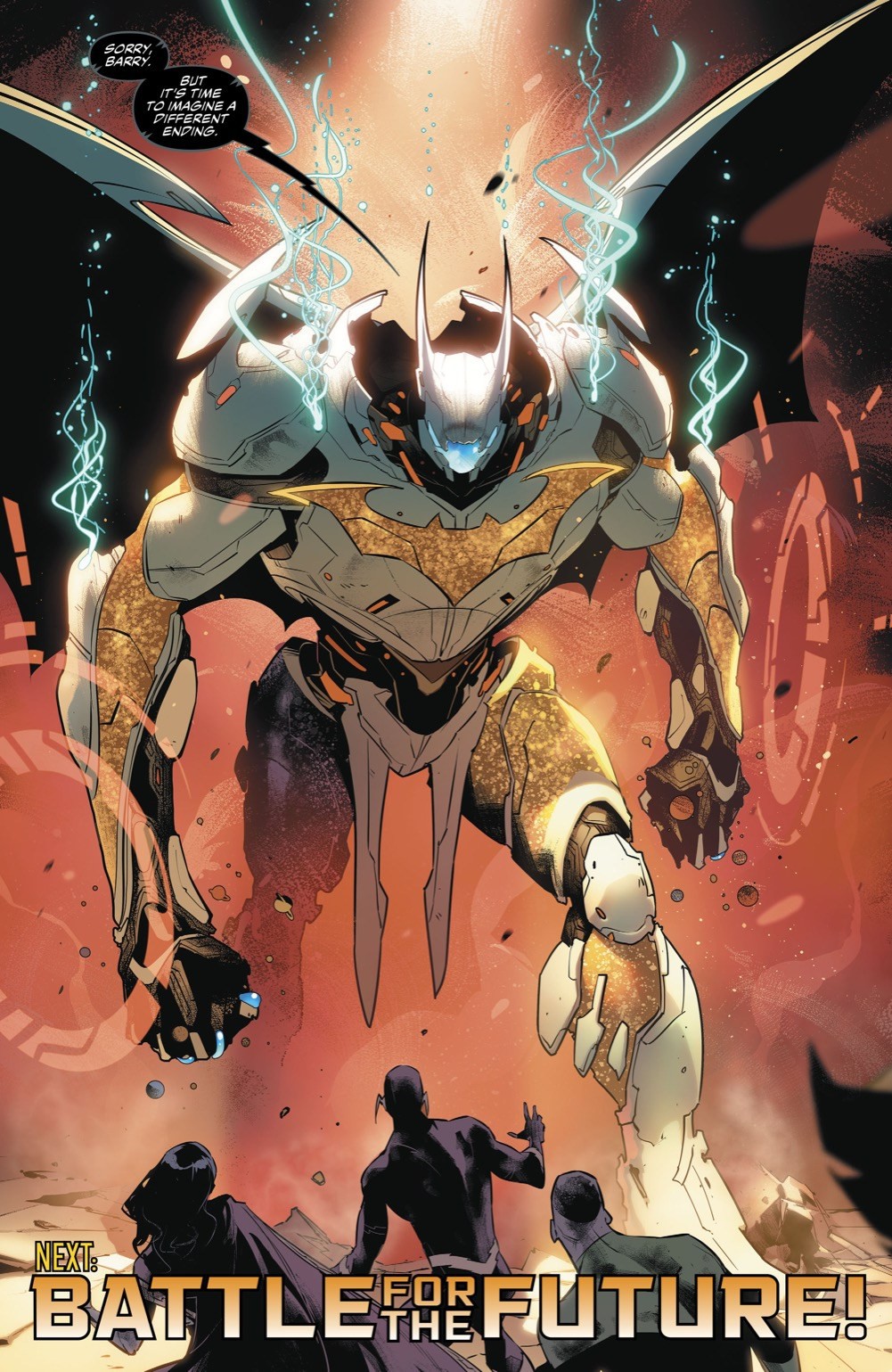 Theo lời World Forger, nếu sở hữu bộ giáp này, Batman không chỉ có thể nhìn thấu tâm trí từng người, mà có thể thay đổi 100% bản thân họ bằng cách tái tạo lại họ theo ý anh muốn. Sau khi được World Forger tin tưởng và ca tụng là cứu tinh tương lai của cả vũ trụ, Batman chấp thuận ngồi lên chiếc ghế và tạo ra bộ giáp mấu chốt để thay đổi thực tại – The Final Bat-suit, bộ giáp mạnh nhất mà anh từng có được.