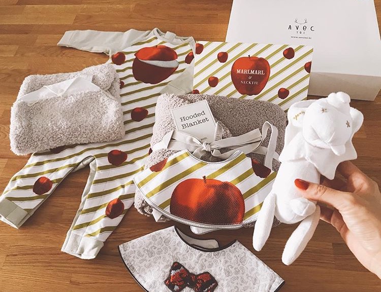 Nghe được tin này, nữ diễn viên Lee Min Jung gửi tặng cô dâu một bộ đồ cho em bé trong bụng.