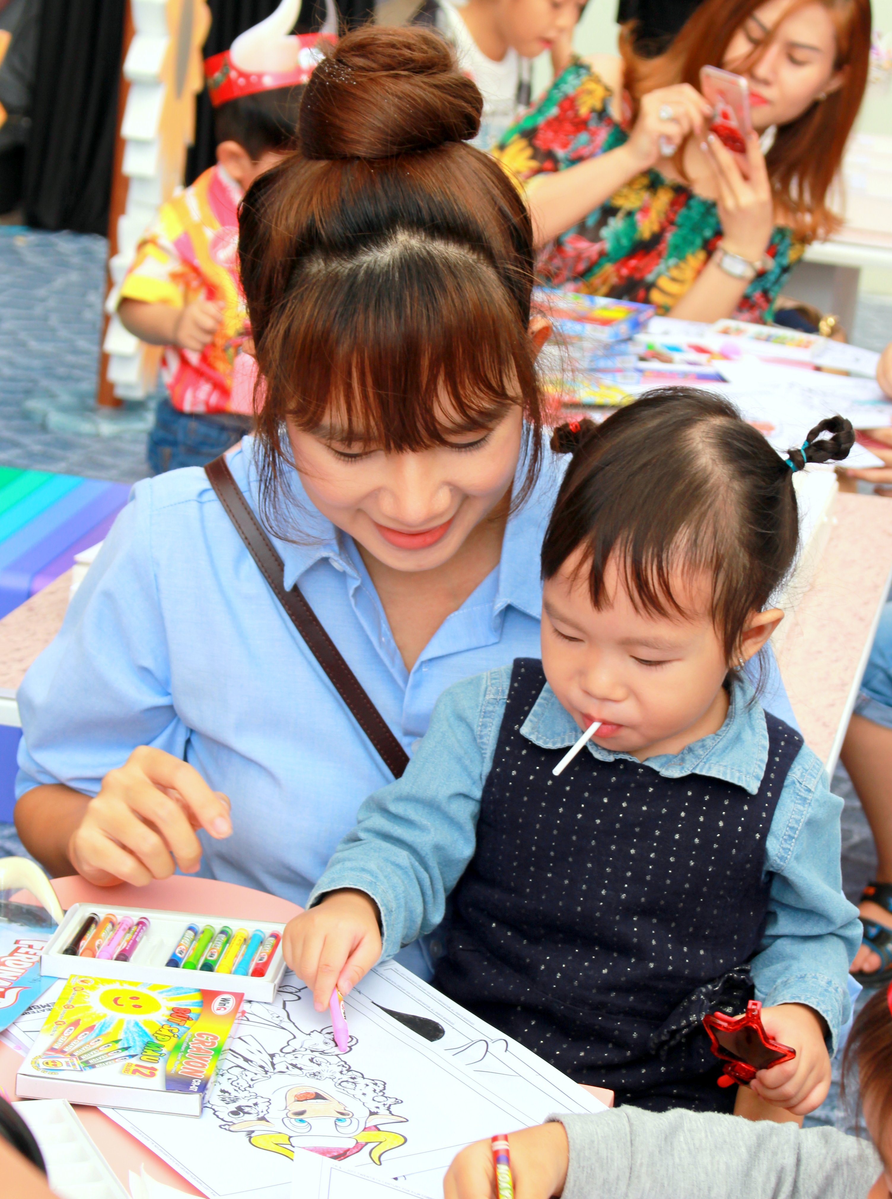 Trong lúc bà mẹ trẻ Minh Hà chơi cùng con,
