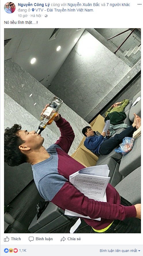 Mới đây, trên facebook cá nhân, nghệ sĩ Công Lý đã đăng tải một bức ảnh chụp lén hài hước về bạn diễn Xuân Bắc nhận nhận được nhiều sự chú ý từ cư dân mạng. Trong ảnh, chàng 'Nam Tào' của Táo Quân đang một tay cầm kịch bản một tay cầm rượu uống. Công Lý còn hóm hỉnh bình luận thêm “Nó liều lĩnh thật”. Được biết đây là hình ảnh hậu trường từ buổi tập Táo quân 2018.