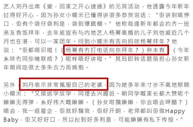 Truyền thông nơi đây còn tiết lộ mỗi khi nghe những tin đồn thất thiệt của Dương Mịch, mẹ Lưu Khải Uy liền nổi giận, mặt nặng mày nhẹ đối xử với con dâu. Nhiều lúc bà ép Dương Mịch phải rời khỏi ngành giải trí, chuyên tâm làm nội trợ, ở nhà phụ dạy con với Lưu Khải Uy. Một tổng biên tập tạp chí Hong Kong còn đăng bài tiết lộ mẹ Lưu Khải Uy là một người vô cùng lạc hậu với nhiều quy tắc, chỉ muốn con dâu suốt ngày ở nhà không được lộ mặt với truyền thông.