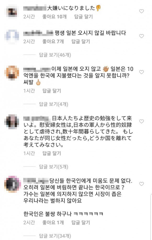 Một số bình luận nói rằng: “Tôi hy vọng bạn đừng bước chân đến Nhật Bản thêm bất cứ lần nào nữa”, “Chẳng có thêm sự phát triển ở Nhật Bản cho bạn nữa đây”, “Rất thất vọng. Đừng bao giờ nghĩ đến việc đến Nhật Bản một lần nữa”.
