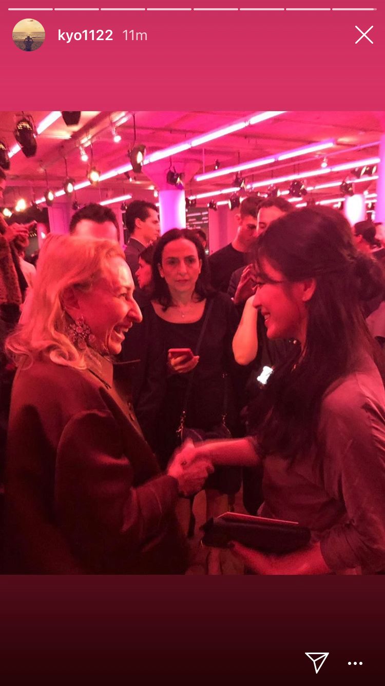 Song Hye Kyo bắt tay trò chuyện với nhà thiết kế Miuccia Prada.