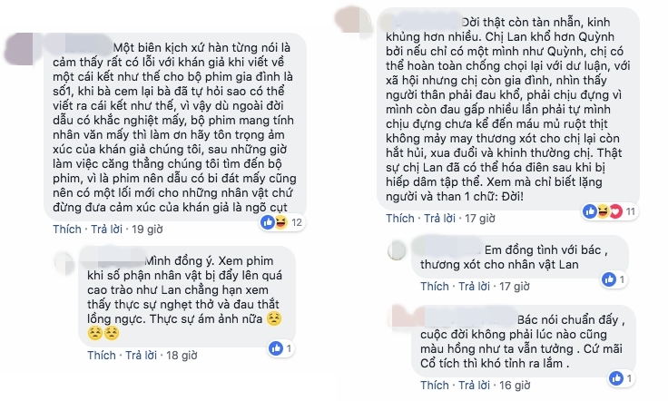Rất nhiều khán giả phản ứng gay gắt sau bài chia sẻ của biên kịch. Đa số khán giả đều hy vọng các nhân vật của Quỳnh búp bê sẽ có một cái kết có hậu.