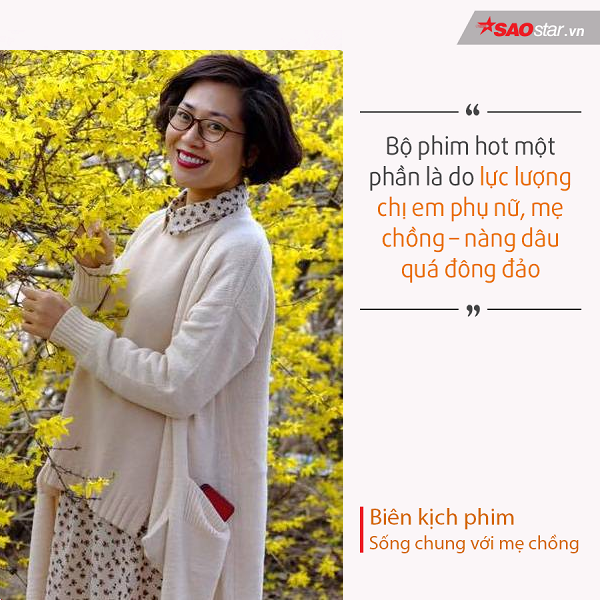 “Có người xem xong phim sợ lấy chồng, thì chắc chắn cũng có người vì xem phim mà thấy hạnh phúc, thêm yêu mẹ chồng, vì cuộc sống làm dâu của mình quá tốt đẹp so với trong phim. Rồi mẹ chồng - con dâu cùng nhau xem phim mỗi tối, ồ lên với nhau rằng: “Đấy, mẹ chồng người ta quá quắt thế kia, mẹ chồng mình hiền lành tâm lý thế này”, thế có phải lại càng yêu thương nhau thắm thiết, gắn kết tình cảm gia đình không. Vậy nên các bạn gái đừng vội quá bi quan sau khi phim lên sóng”.