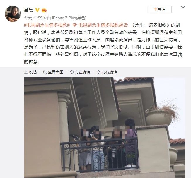 Trước đó, đạo diễn Dư sinh đã trực tiếp chỉ trích lượng fan cuồng và mong họ dừng ngay những hành động như thế này: “Kịch bản, đạo cụ, trang phục đều là kết quả lao động cần cù của mỗi nhân viên trong ekip. Trong lúc tác phẩm đang quay, fan tư sinh (fan cuồng) dùng những thiết bị chuyên nghiệp để chụp lén, nhục mạ nhân viên trong đoàn, bao vây chặn đánh diễn viên.