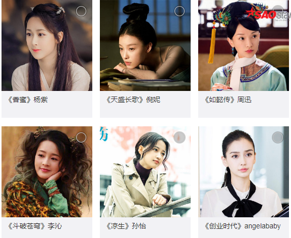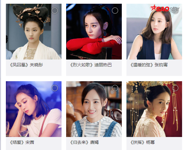 6 đề cử đầu tiên gồm: Quan Hiểu Đồng, Địch Lệ Nhiệt Ba, Trương Quân Ninh, Tống Thiến, Đường Yên và Dương Mịch.