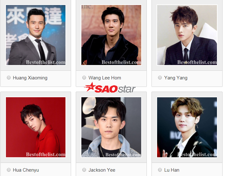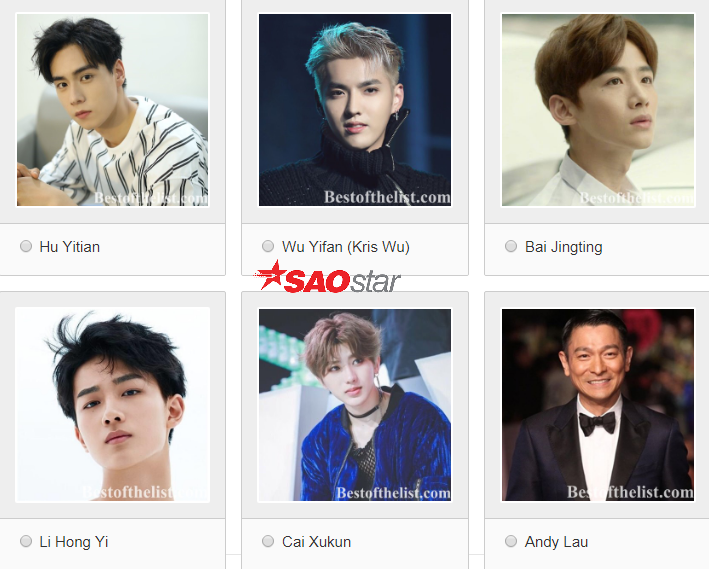 Trang báo Bestofthelist đã lọc ra danh sách 24 ngôi sao nam hàng đầu làng giải trí Hoa ngữ để tiến hành cuộc bầu chọn cho hạng mục Nam diễn viên Trung Quốc đẹp trai nhất năm 2018. Kết quả hoàn toàn dựa vào phiếu bầu của người hâm mộ địa phương cũng như quốc tế. Thể lệ bầu chọn: 1 phiếu trong một ngày, tức 24 giờ. Theo dự kiến, ngày kết thúc cuộc thi sẽ vào ngày 20/04 năm sau.