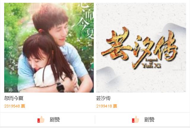 Trong khi đó vị trí thứ 3 và thứ 4 lần lượt là hai bộ phim Hương mật tựa khói sương do Dương Tử đóng chính và bộ phim vừa mới lên sóng cách đây không lâu Thời gian tươi đẹp của anh và em do Triệu Lệ Dĩnh đảm nhận vai nữ chính. Triệu Lệ Dĩnh và Dương Tử đều là những tiểu hoa nổi tiếng, có độ nhân khí cao trong ngành giải trí hiện nay, mặc dù nói số phiếu của những bộ phim mà cả hai nhận được không hề thấp nhưng xét trên mặt bằng hai bộ phim của Chu Nhất Long mà nói thì thật sự không hề lý tưởng chút nào.