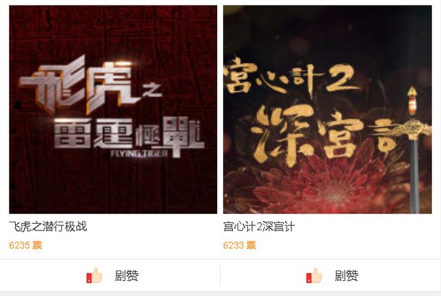 Nếu như nói một số bộ phim kể trên so với hai bộ phim Trấn Hồn và Hứa với em phù sinh nhược mộng của Chu Nhất Long không hề lý tưởng mấy mặc dù số phiếu cũng khá cao thì đến hai bộ phim vị trí cuối cùng trong bảng xếp hạng là Cung tâm kế 2 - một bộ phim truyền hình cổ trang của đài TVB và Phi hổ chi lôi đình cực chiến - một bộ phim hành động do Thiệu thị đầu tư thì số phiếu bầu còn thê thảm hơn, chỉ có 6000 phiếu, còn chưa đạt tới được 10000.