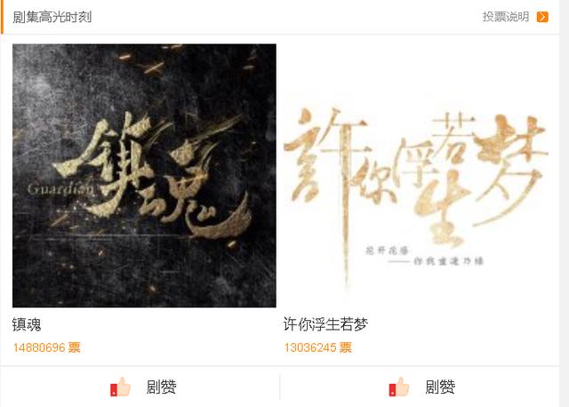 Từ trong bảng bỏ phiếu có thể thấy, hai bộ phim truyền hình Trấn hồn và Hứa cùng em Phù sinh nhược mộng dưới sự tham gia của Chu Nhất Long đứng vị trí thứ nhất và thứ hai.
