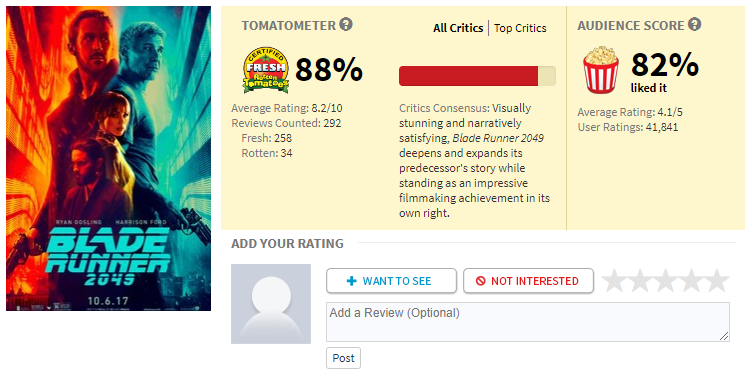 Một sự pha trộn của khoa học viễn tưởng và tiểu thuyết trinh thám, Blade Runner (1982) là bộ phim bom tấn quan trọng trong năm 1982. Với thiết kế hậu hiện đại độc nhất, Blade Runner 2049 đã trở nên có ảnh hưởng lớn trong thể loại khoa học viễn tưởng, đạt được sự tôn trọng nhất định từ các nhà làm phim để gia tăng sức ảnh hưởng đó và là nguồn cảm hứng cho các thể loại phim viễn tưởng sau này.