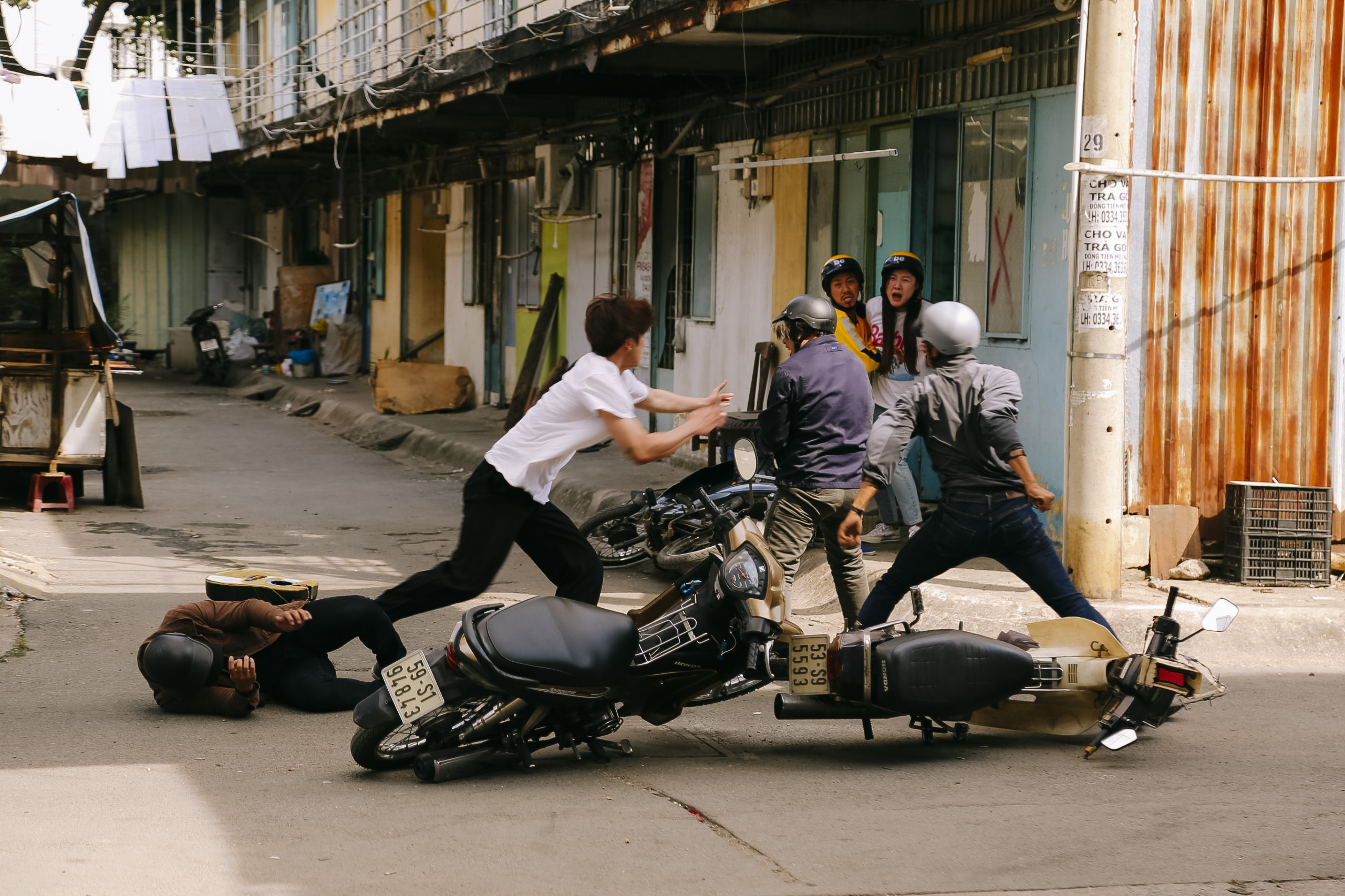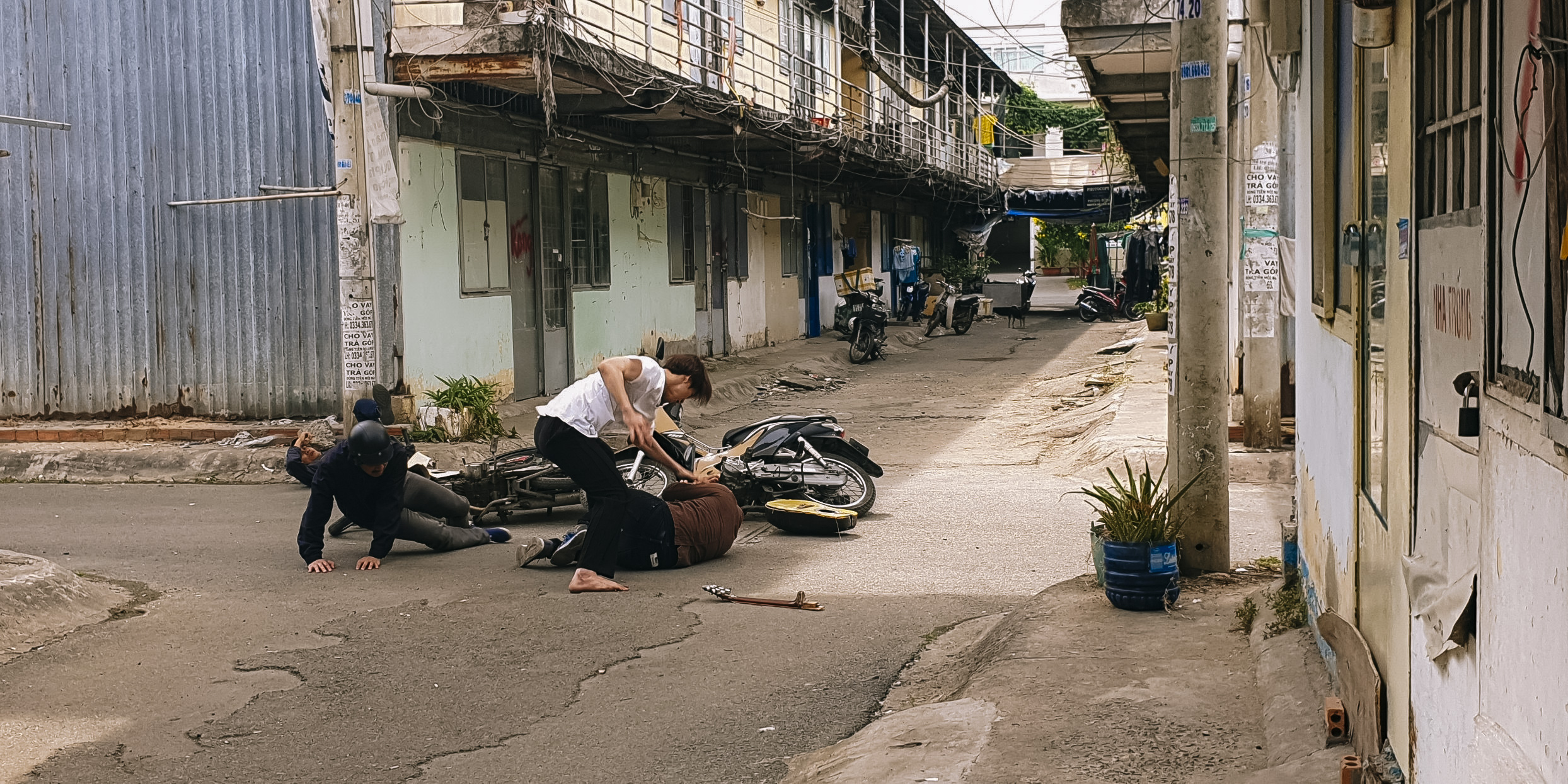 Lúc này A Tắc được Quý nhờ chở đến chỗ anh trai, vô tình chạy ngang nơi ông Thành vừa ăn xong. Nhẩm biết con gái đang đi tìm thằng anh “trời ơi đất hỡi” nên ông quyết định bám theo. Nào ngờ, những tên côn đồ ngày trước bị ông bắt cũng đang rắp tâm trả thù. Đến nơi Sang đang ở, Quý năn nỉ anh trai về thì ông Thành đến. Chưa kịp nói gì với con thì một chiếc xe đã lao đến tông khiến ông rơi vào hoàn cảnh nguy hiểm, ngay lập tức Sang lao đến giải cứu cho cha và đánh nhau kịch liệt với hai gã côn đồ.