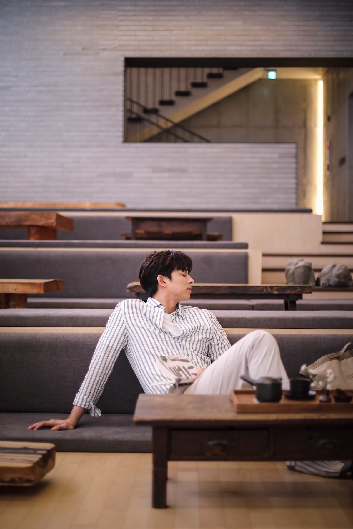Sau khi say sưa đọc sách, Gong Yoo dành ít thời gian để thư giãn.