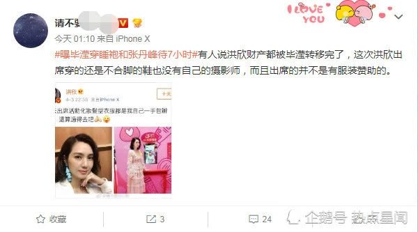 Ngoài ra, blogger này còn tiết lộ tài sản của Hồng Hân toàn bộ đều bị Tất Oánh chuyển đi hết cả rồi, hai ngày trước Hồng Hân từng tham dự sự kiện với bộ dạng làm người xem không thể đau lòng hơn khi mang một đôi giày không hề thích hợp với chân mình, cũng không có nhiếp ảnh cho riêng mình. Hồng Hân còn đột nhiên “cảm khái” nói rằng bản thân quá ngốc, xem ra cô ấy sớm đã phát hiện ra gì khác thường vào thời điểm đó nhưng giờ có lẽ đã quá muộn để cứu hồi lại tất cả.