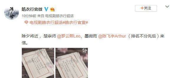 Sau khi công bố diễn viên chính, cả hai Trần Phi Vũ và La Vân Hi cũng bắt đầu follow và chào hỏi nhau trên weibo càng khiến cho fan nguyên tác và fan của hai nhà phấn khích với sự hợp tác này.