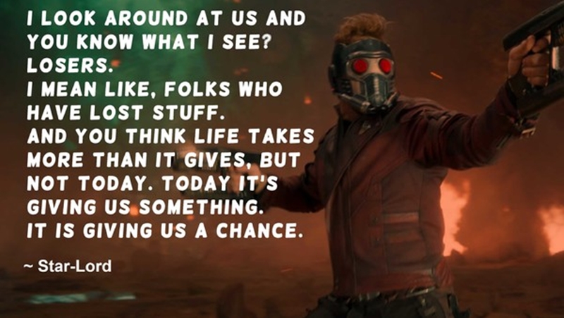Đây là những câu chữ truyền cảm hứng mà Peter Quill dành cho những đồng đội của mình.