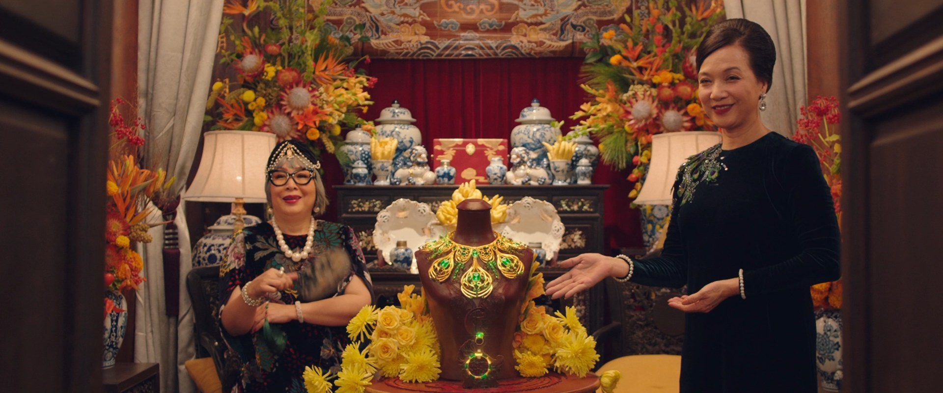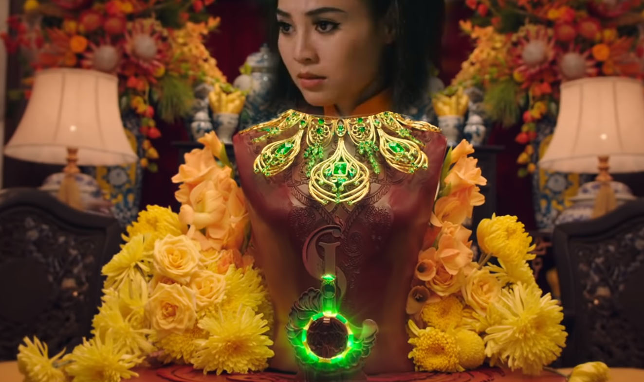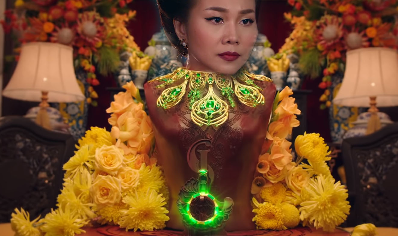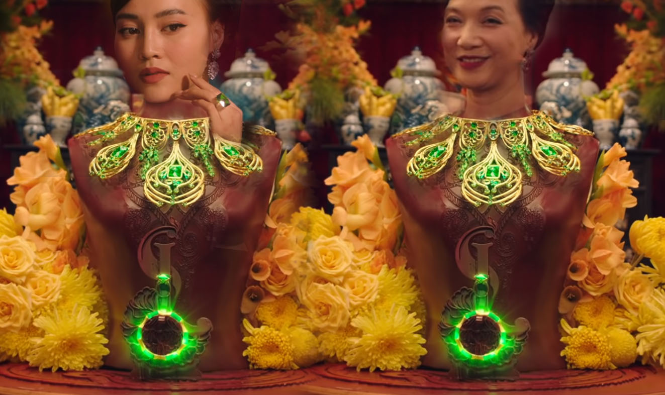 Như đã biết từ poster phim, bộ sậu gia bảo nhà họ Lê gồm ba món đó là chiếc vòng Tỷ Ngọc Sinh Hương vừa được hé lộ một cách rõ nét hơn trong teaser cùng chiếc nhẫn và chiếc lắc tay. Chiếc nhẫn màu lục bảo vốn là vật bất li thân của bà Mai chủ nhà. Thế nhưng không hiểu vì sao cuối đoạn teaser vừa rồi, chiếc nhẫn này lại về tay Ms Q.