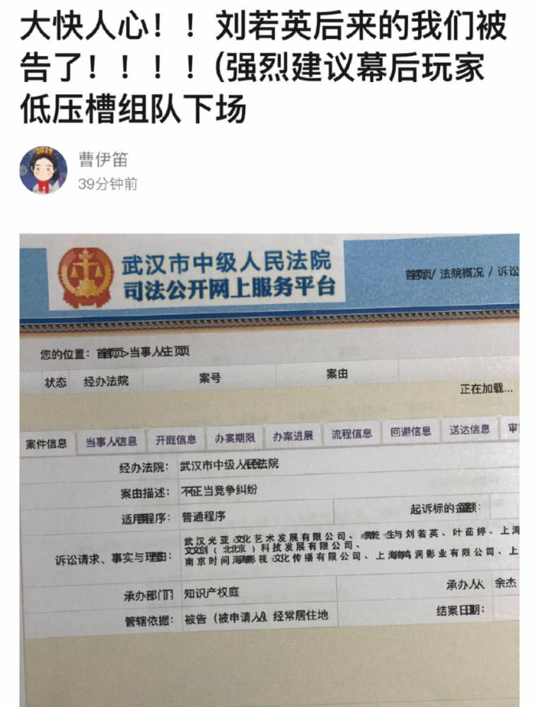 Từ trong bức hình được truyền trên mạng ngày hôm nay có thể thấy, Lưu Nhược Anh và phía chế tác bộ phim điện ảnh này đều bị kiện lên tòa án vì lý do “cạnh tranh bất không lành mạnh”, phí thụ lý của đơn kiện này là 390 ngàn NDT, phí bồi thường cao nhất đạt đến 70 triệu NDT. Đối mặt với số tiền khá lớn, nhiều cư dân mạng tỏ ra vô cùng bất ngờ, trong khi đó bên phía Lưu Nhược Anh chưa hề đưa ra bất kỳ câu trả lời nào cả.