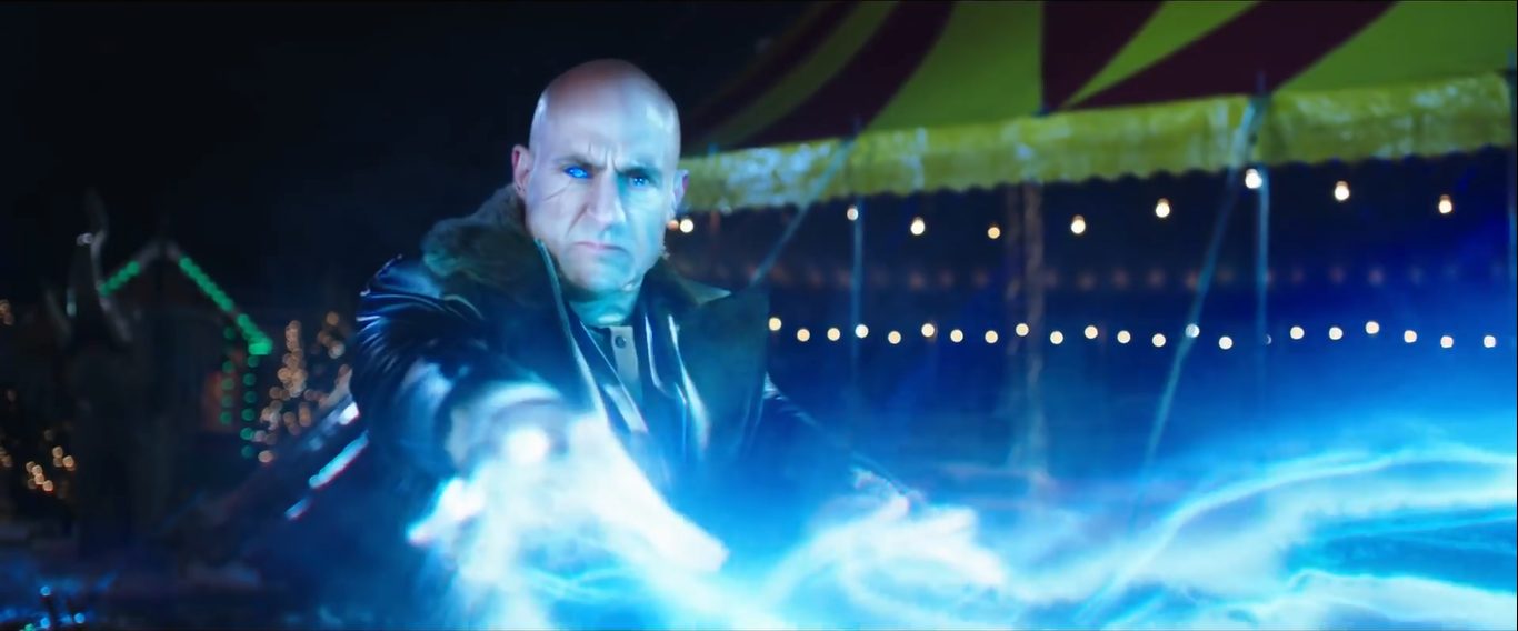 Tuy nhiên, Shazam cũng không phải người duy nhất sở hữu sức mạnh sấm sét của vị pháp sư già nua. Một nhà khoa học độc ác - Tiến sĩ Sivana (đóng bởi Mark Strong) cũng sẽ tìm cách đánh cắp quyền năng của pháp sư Shazam và đối đầu với chàng siêu anh hùng. Trong đoạn clip, Sivana đã sở hữu các khả năng bay lượn, phóng sét tương tự như Shazam.