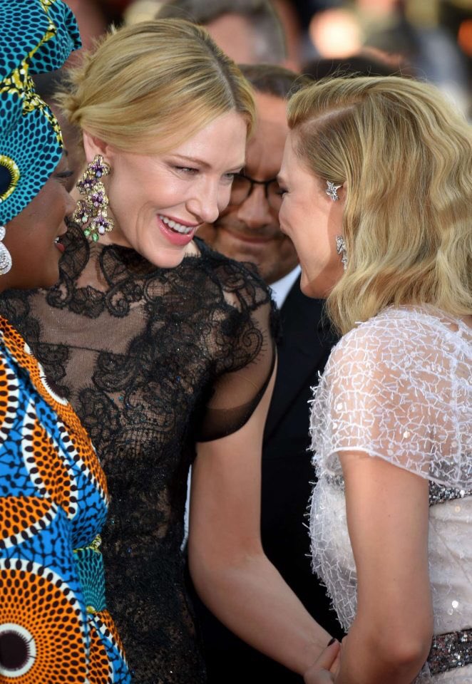 Cate Blanchett, chủ tịch hội đồng giám khảo Cannes năm nay xuất hiện trong bộ ren đen đầy quyến rũ và gơị cảm. Đây là chiếc váy Armani Prive mà nữ diễn viên đã mặc tại Quả cầu vàng 2014.