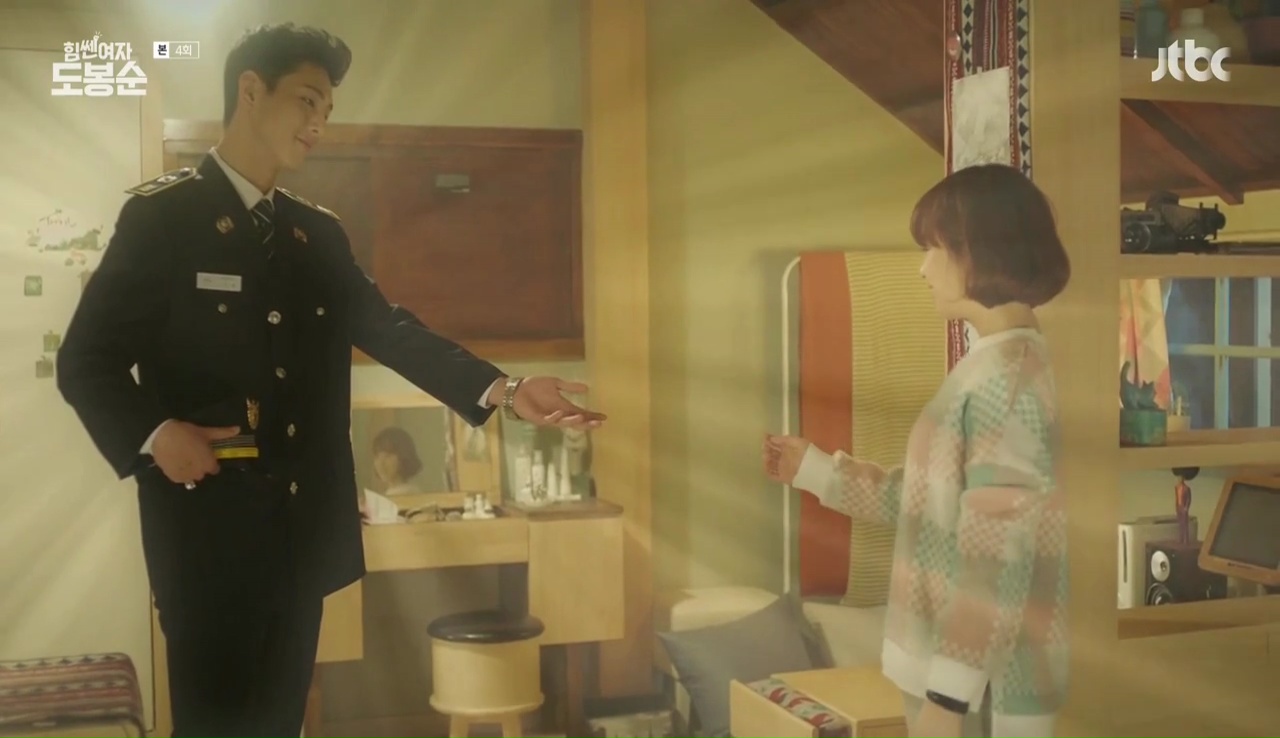 Sau lần chạm mặt đầu tiên ở đồn cảnh sát, Min Hyuk gặp lại Guk Doo tại nhà khi anh chàng cảnh sát này đến đón Do Bong Soon. Nam chính đã chỉ tay, nháy mắt đầy tình ý với bạn thân nữ chính ngay trước mặt cô. Những hình ảnh “gây sốt” này đã khiến người hâm mộ vô cùng thích thú. Một số ý kiến cho rằng, mỗi khi cặp đôi Hyuk - Doo ở bên nhau, cô nàng đáng yêu Bong Soon bị “lơ” đẹp.