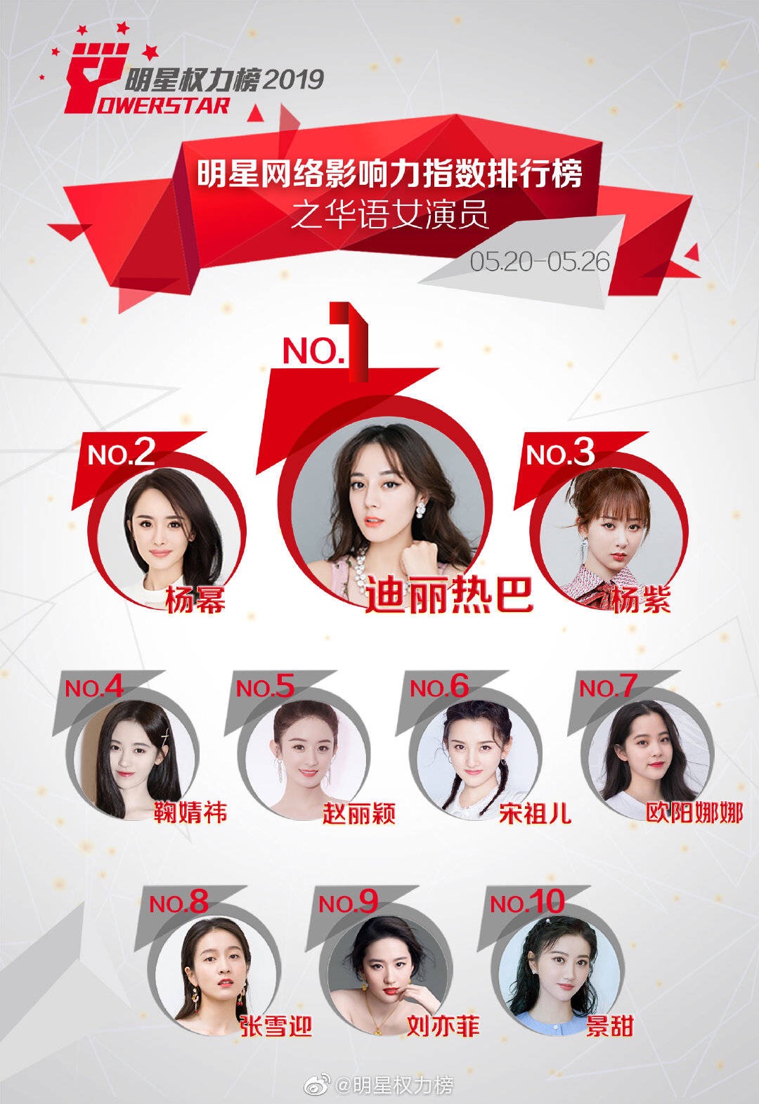 Địch Lệ Nhiệt Ba tiếp tục duy trì vị trí quán quân cho BXH nữ diễn viên.