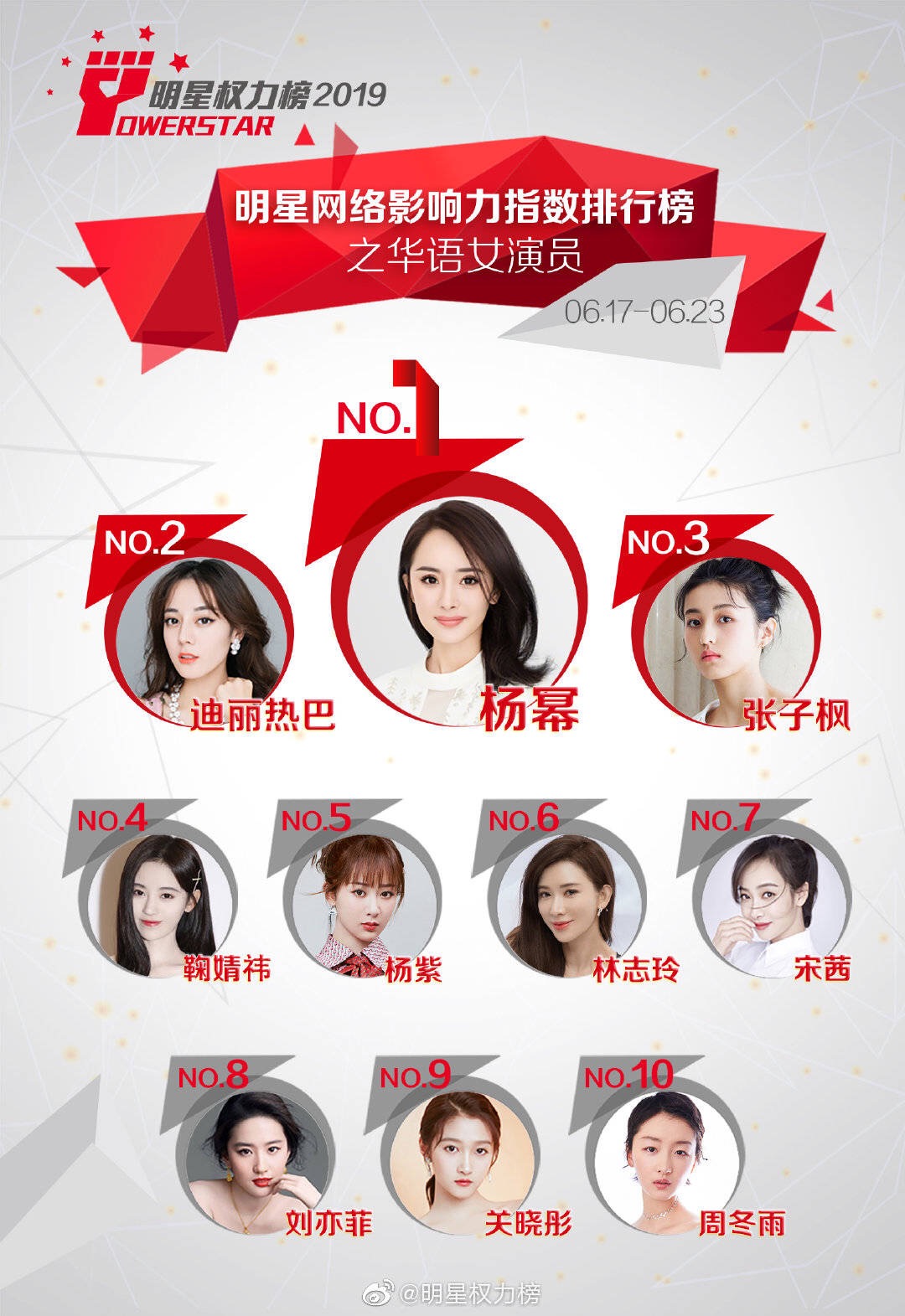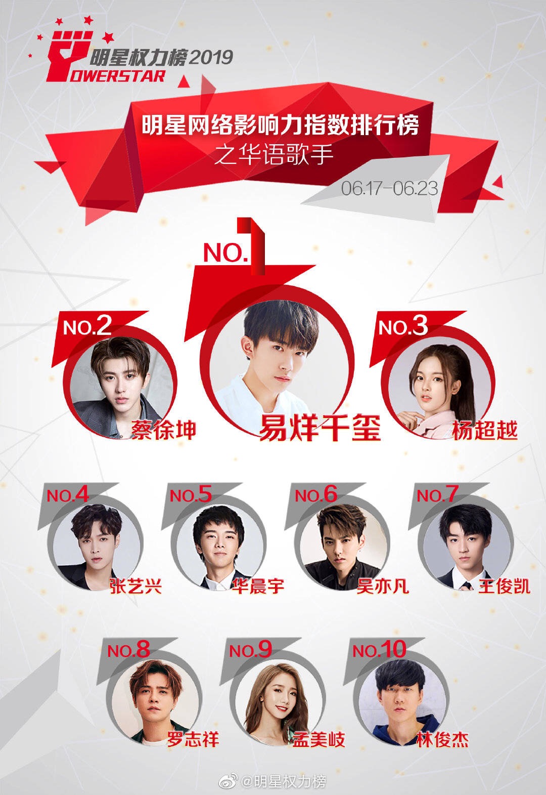 Đến hẹn lại lên, sau một tuần khảo sát về độ nổi tiếng của những ca sĩ/nam/nữ diễn viên trên mạng xã hội Weibo ở Trung Quốc, Powerstar đã công bố kết quả bỏ phiếu hạng những ngôi sao có chỉ số ảnh hưởng từ ngày 17/06 đến ngày 23/06.
