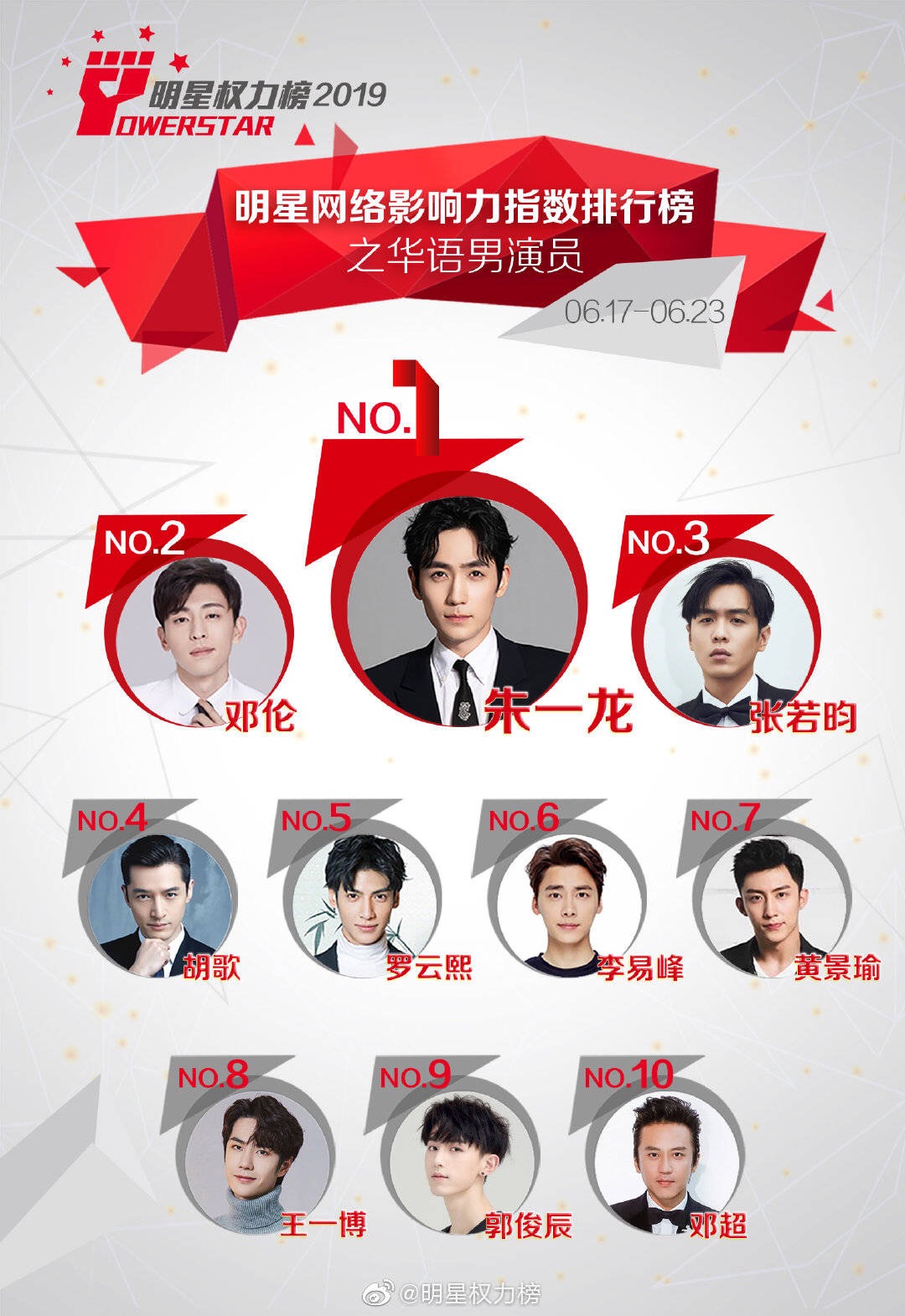 Chu Nhất Long và Đặng Luân duy trì hai vị trí cao nhất ở bảng xếp hạng này. Trong khi, với tin đám cưới gân đây đã giúp Trương Nhược Quân vươn lên hạng 3.