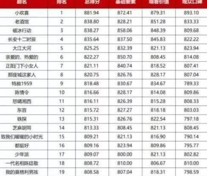 Ngoài sự bất ngờ về vị thứ của hai tác phẩm Trần tình lệnh và Thân ái nhiệt tình yêu thương, mọi người cũng ngạc nhiên không kém khi Tiểu hoa hỷ có thể dẫn đầu danh sách. Tiểu hoan hỷ là bộ phim truyền hình chủ yếu xoay quanh nội dung thi đại học của học sinh luôn nhận được nhiều yêu thích, thế nhưng tác phẩm này không phải là bộ phim có rating và nhiệt độ cao. Có thể áp chế được Trần tình lệnh và Thân ái nhiệt tình yêu thương thật sự làm mọi người cảm thấy bất ngờ.