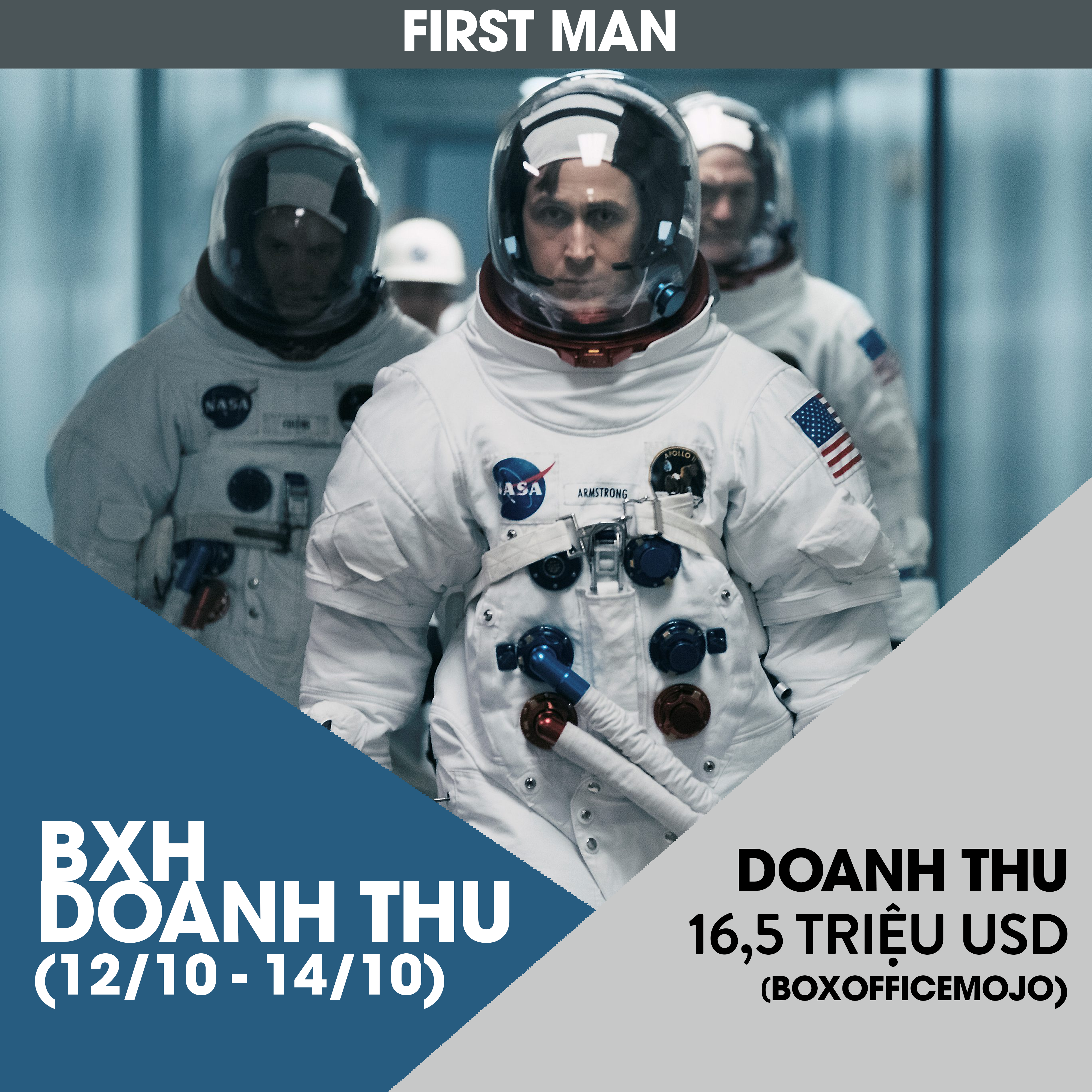 Hạ cánh ở vị trí thứ ba, bộ phim mới của Universal - First Man chỉ mang về 16,5 triệu USD trong tuần mở màn. Tại thị trường quốc tế, bộ phim đã ra mắt tại 22 thị trường và mang lại doanh thu ước tính là 8,6 triệu USD. Dẫn đầu là 3 triệu USD từ thị trường Anh, tiếp theo là Úc (1,67 triệu USD), Tây Ban Nha (1 triệu USD) và Nga (573 nghìn USD). Thị trường sắp tới bộ phim sẽ ra mắt bao gồm Pháp, Brazil và Hàn Quốc vào cuối tuần tới, tiếp theo là Ý (31 tháng 10), Đức (8/11), Mexico (ngày 9/11) và Nhật Bản (ngày 8/2).