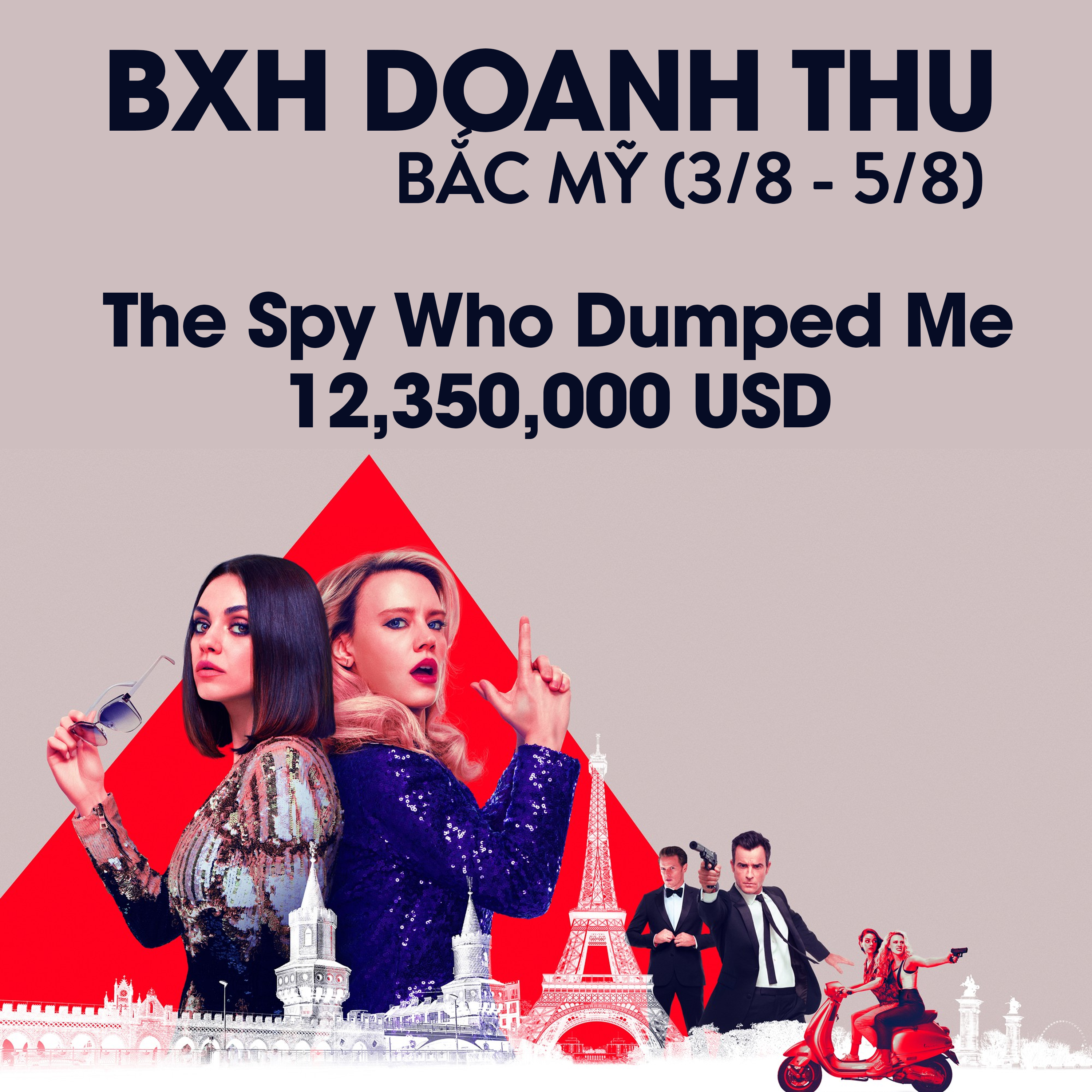 The Spy Who Dumped Me của Lionsgate đã thu được 12,35 triệu USD và đứng ở vị trí thứ ba. Với kinh phí sản xuất chỉ vỏn vẹn 40 triệu USD, doanh thu mở màn của bộ phim đang được đánh giá là khá ổn và nó chỉ thấp hơn so với mong đợi của nhà sản xuất. Tuần tới, bộ phim sẽ chính thức ra mắt tại thị trường quốc tế và doanh thu hứa hẹn sẽ thay đổi rất nhiều.