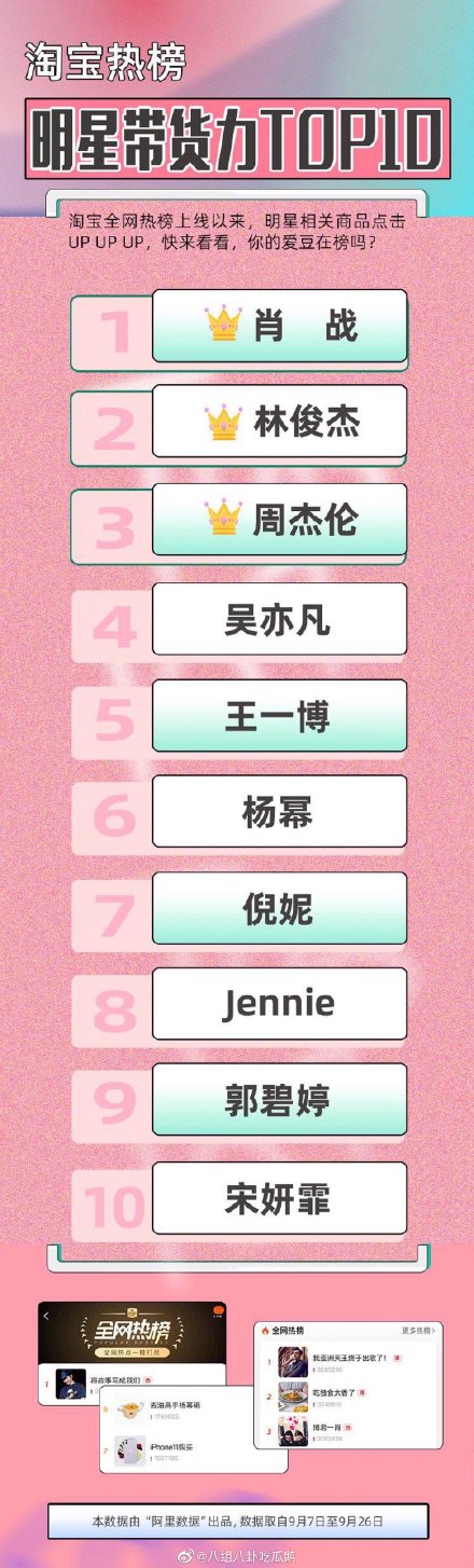Trong bảng xếp hạng giá trị thương mại có tốc độ tiêu thụ lớn nhất của các minh tinh lần này điều bất ngờ nhất chính là việc Vương Nhất Bác chỉ có thể xếp ở vị trí thứ 5. Trong thời gian gần đây, Vương Nhất Bác cũng rất được yêu thích không kém gì Tiêu Chiến sau sự thành công của phim truyền hình đam mỹ Trần tình lệnh. Nếu như không có Trần tình lệnh thì trước đó anh cũng được nhiều người biết đến qua các chương trình và phim ảnh khác nhau.