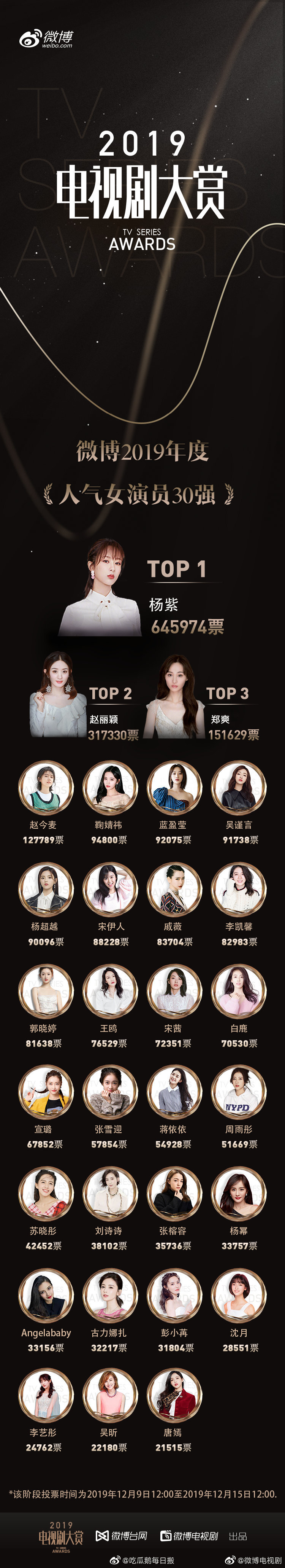 Bảng xếp hạng top 10 Nữ minh tinh có nhân khí cao nhất trong TV SERIES AWARDS: