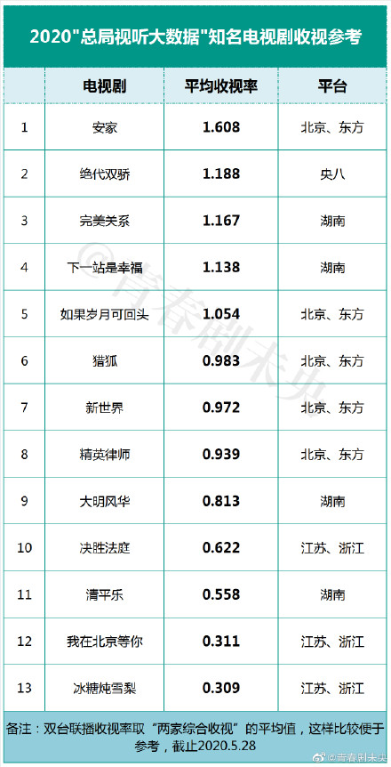 Bảng xếp hạng thành tích rating của các bộ phim trong các tháng đầu năm 2020 vừa qua: