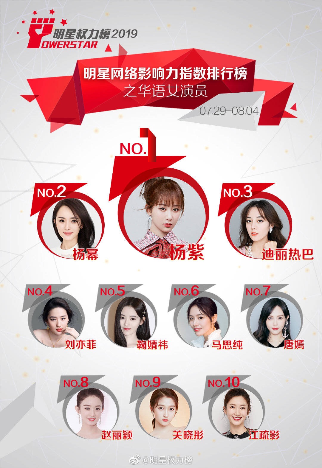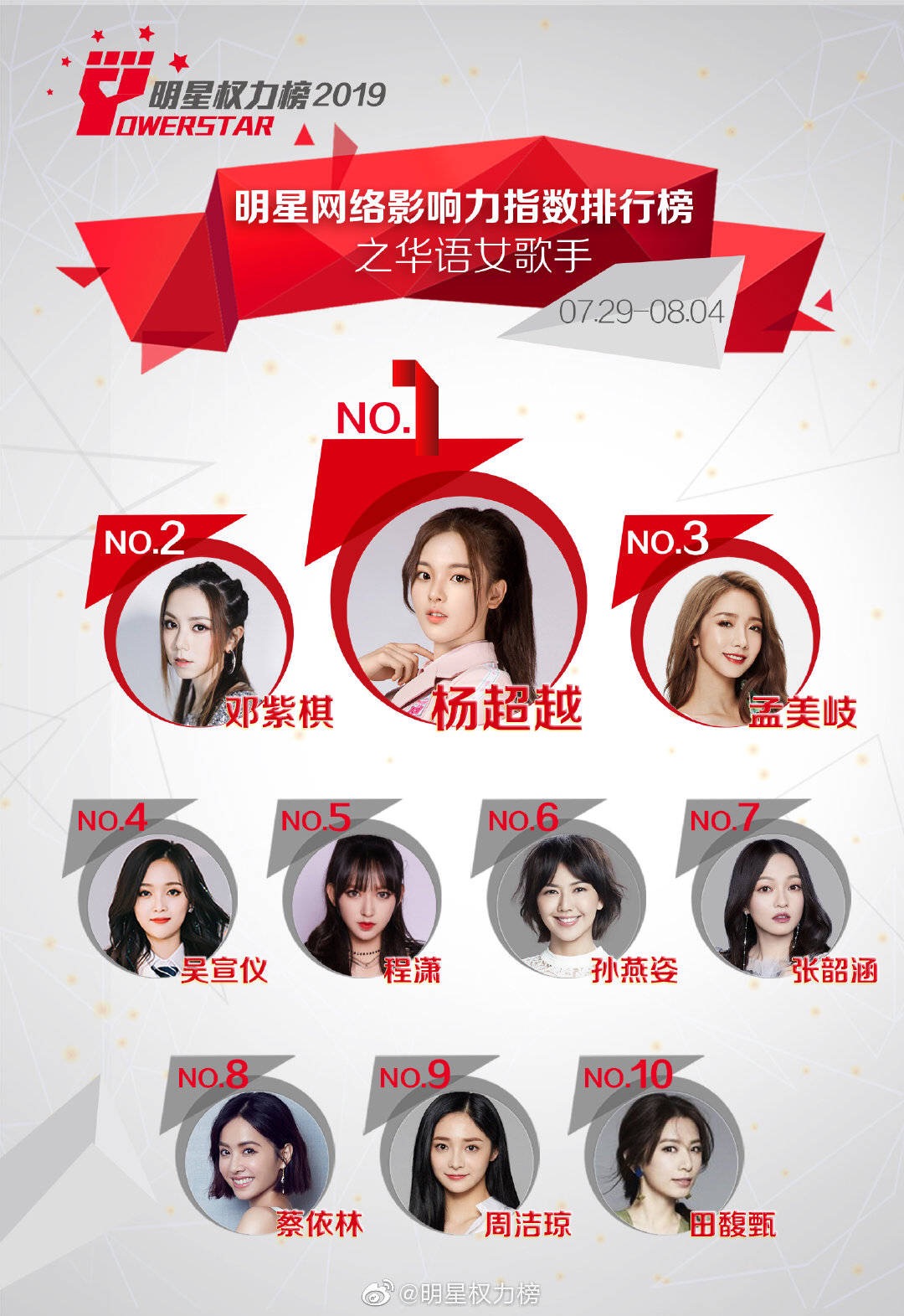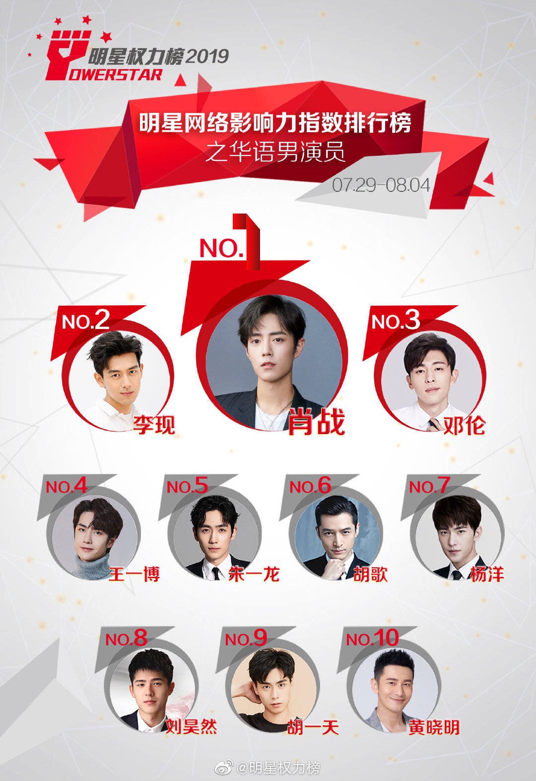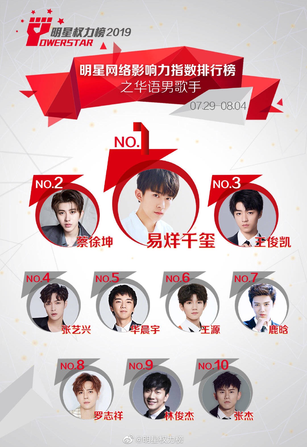 Mới đây, Powerstar đã công bố xếp hạng cho những ngôi sao châu Á sở hữu chỉ số ảnh hưởng mạnh nhất từ ngày29/07 đến 04/08. Kêt quả được tổng hợp sau một tuần qua thông kế tương tác, bình chọn từ các phiếu bầu của cư dân mạng, người hâm mộ về độ nổi tiếng và sức ảnh hưởng của những ca sĩ/nam/nữ diễn viên trên mạng xã hội Weibo ở Trung Quốc.