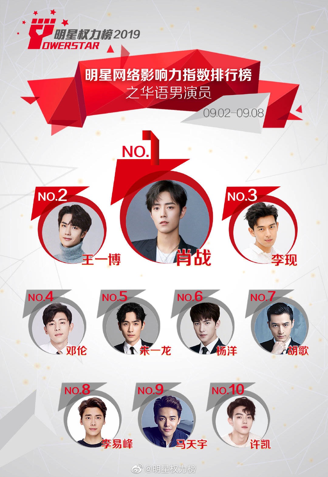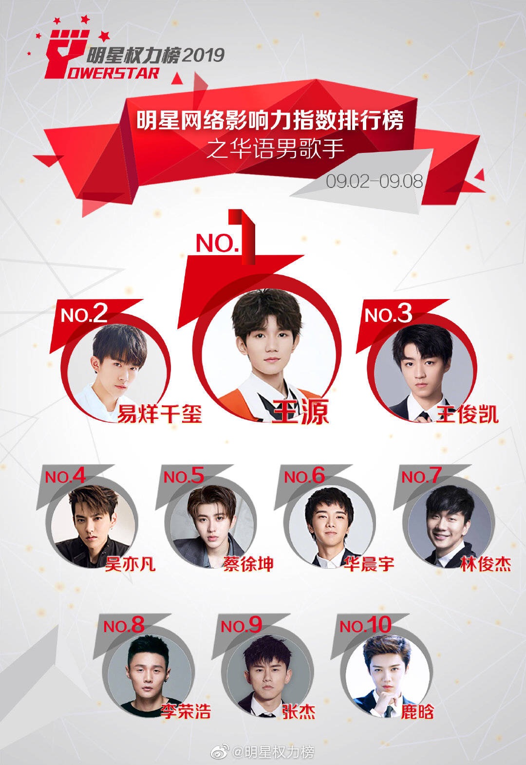 Mới đây, Powerstar tiếp tục công bố xếp hạng cho những ngôi sao châu Á sở hữu chỉ số ảnh hưởng mạnh nhất vào đầu tháng Chín. Để có được kết quả này, họ phải tổng hợp thống kê tương tác, bình chọn từ các phiếu bầu của cư dân mạng, người hâm mộ về độ nổi tiếng và sức ảnh hưởng của những ca sĩ/nam/nữ diễn viên trên mạng xã hội Weibo ở Trung Quốc từ ngày 02/09 đến ngày 08/09.