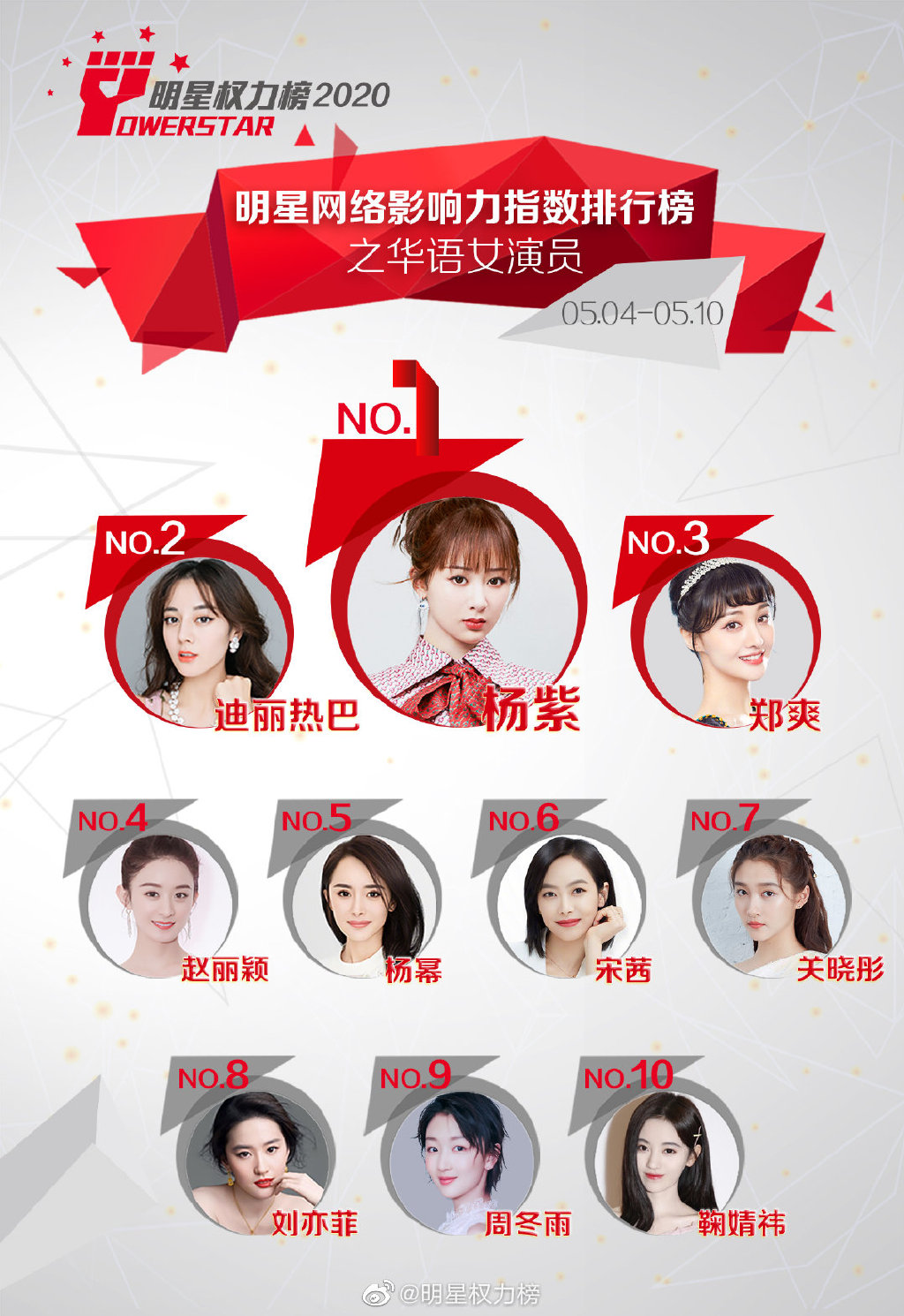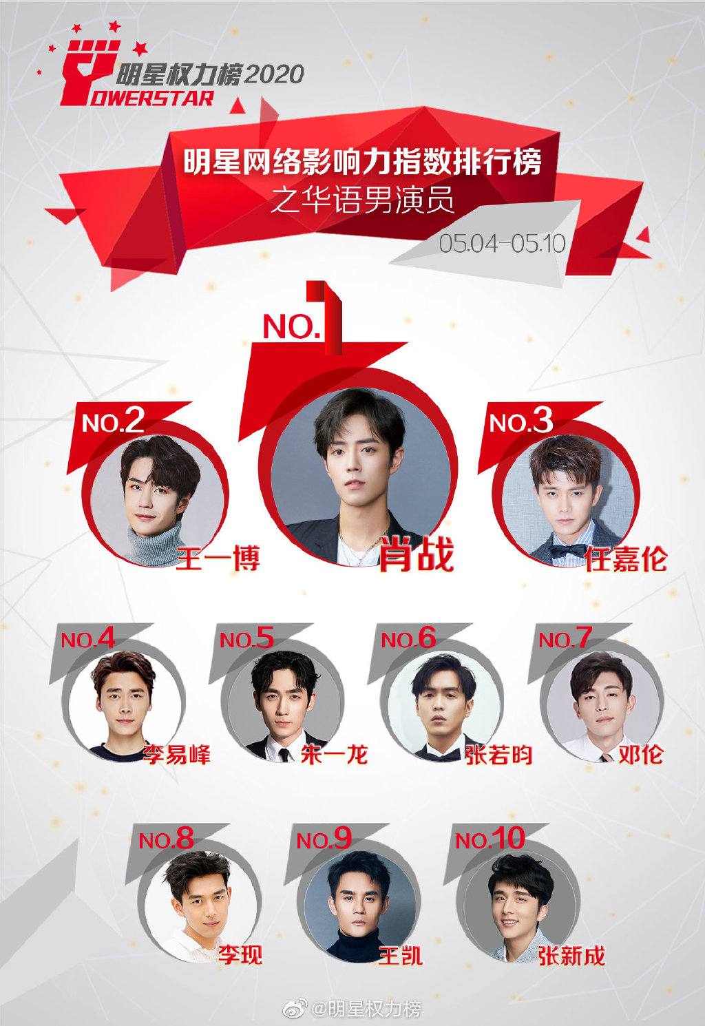 Vào chiều ngày 13/05, Powerstar đã công bố xếp hạng cho những ngôi sao châu Á - người sở hữu chỉ số ảnh hưởng lớn nhất từ ngày 04/05 đến ngày 10/05. Được biết, kết quả này dựa trên thống kê tương tác, bình chọn từ các phiếu bầu của cư dân mạng, người hâm mộ về độ nổi tiếng và sức ảnh hưởng của những nam/nữ diễn viên trên mạng xã hội Weibo ở Trung Quốc trong một tuần. Theo đó, kết quả cuối cùng được cho biết như sau: