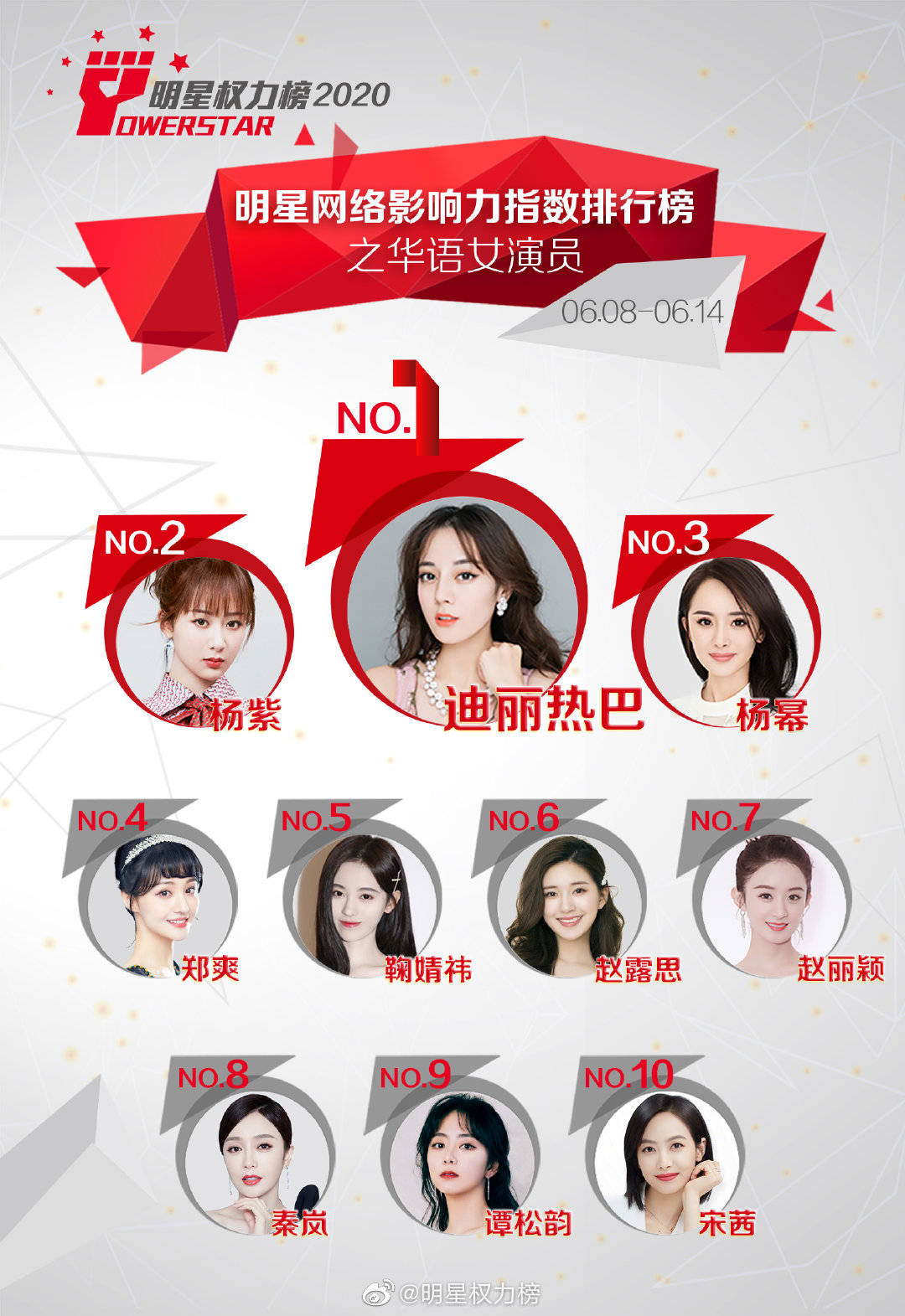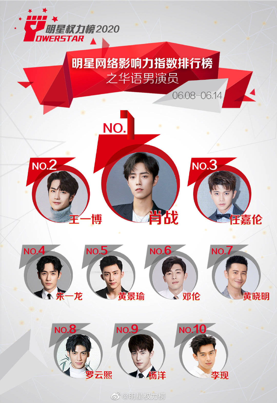 Vào ngày 17/06 vừa qua, Powerstar đã công bố xếp hạng cho những ngôi sao châu Á – người sở hữu chỉ số ảnh hưởng lớn nhất từ ngày 08/06 đến ngày 14/06. Được biết, kết quả này dựa trên thống kê tương tác, bình chọn từ các phiếu bầu của cư dân mạng, người hâm mộ về độ nổi tiếng và sức ảnh hưởng của những nam/nữ diễn viên trên mạng xã hội Weibo ở Trung Quốc trong một tuần. Theo đó, kết quả cuối cùng được cho biết như sau: