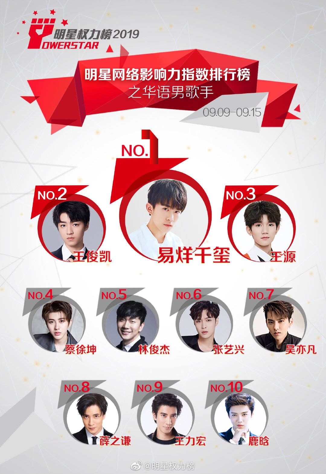 Mới đây, Powerstar tiếp tục công bố xếp hạng cho những ngôi sao châu Á sở hữu chỉ số ảnh hưởng mạnh nhất vào đầu tháng Chín. Để có được kết quả này, họ phải tổng hợp thống kê tương tác, bình chọn từ các phiếu bầu của cư dân mạng, người hâm mộ về độ nổi tiếng và sức ảnh hưởng của những ca sĩ/nam/nữ diễn viên trên mạng xã hội Weibo ở Trung Quốc từ ngày 09/09 đến ngày 15/09.