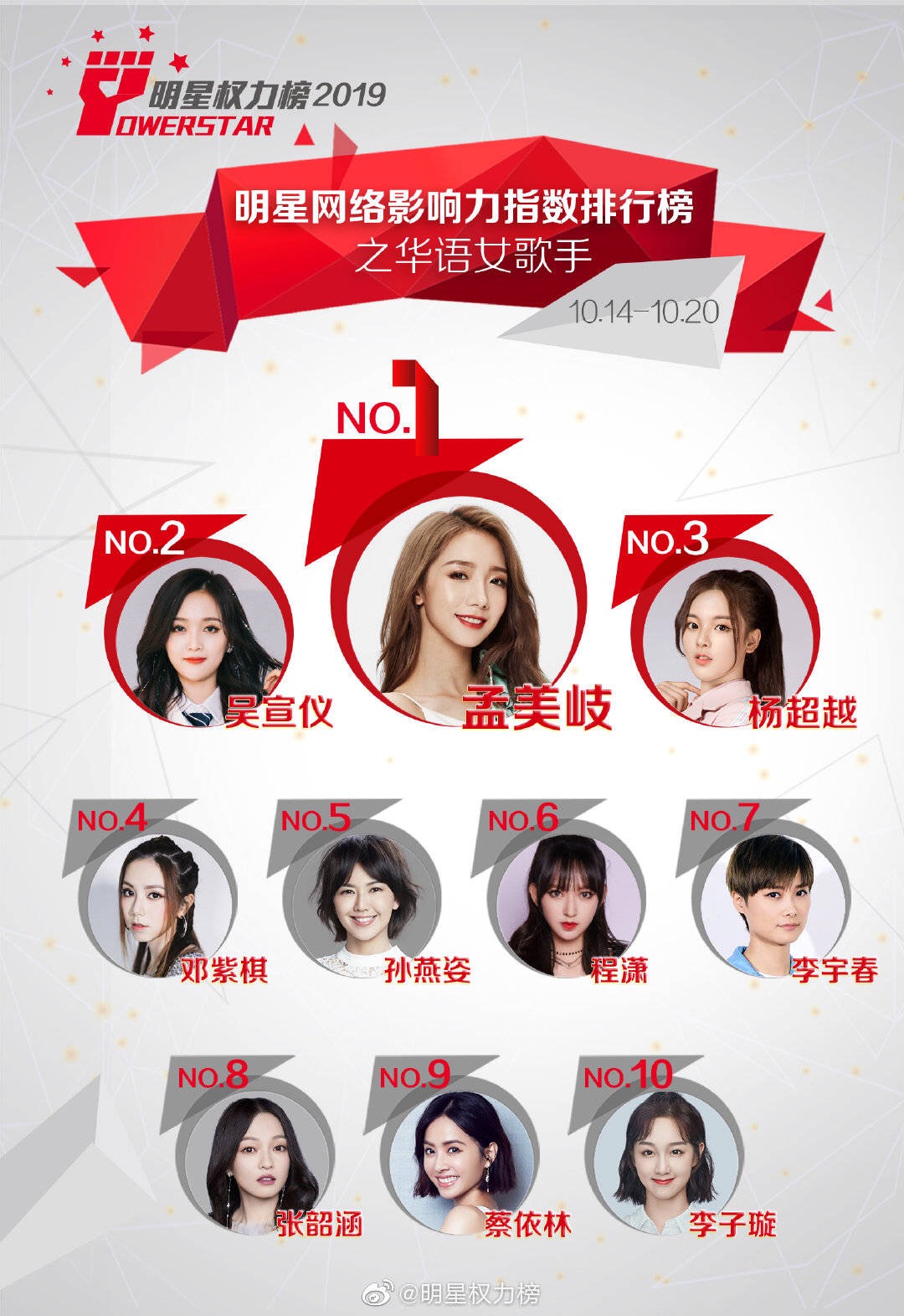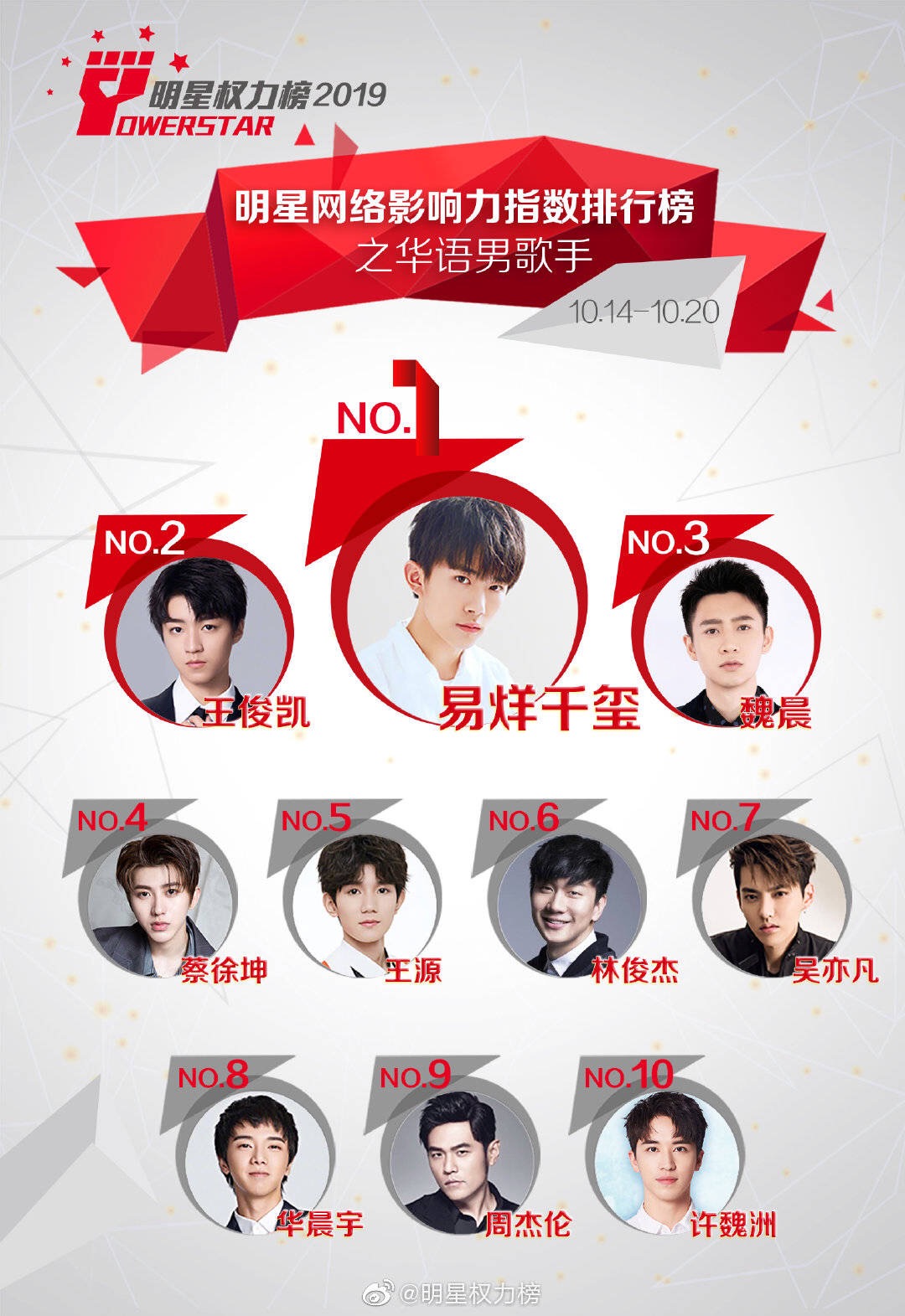 Mới đây, Powerstar đã công bố xếp hạng cho những ngôi sao châu Á, người sở hữu chỉ số ảnh hưởng mạnh nhất vào tuần ba tháng Mười. Để có được kết quả này, họ phải tổng hợp thống kê tương tác, bình chọn từ các phiếu bầu của cư dân mạng, người hâm mộ về độ nổi tiếng và sức ảnh hưởng của những nam/nữ ca sĩ - diễn viên trên mạng xã hội Weibo ở Trung Quốc từ ngày 14/10 đến ngày 20/10.