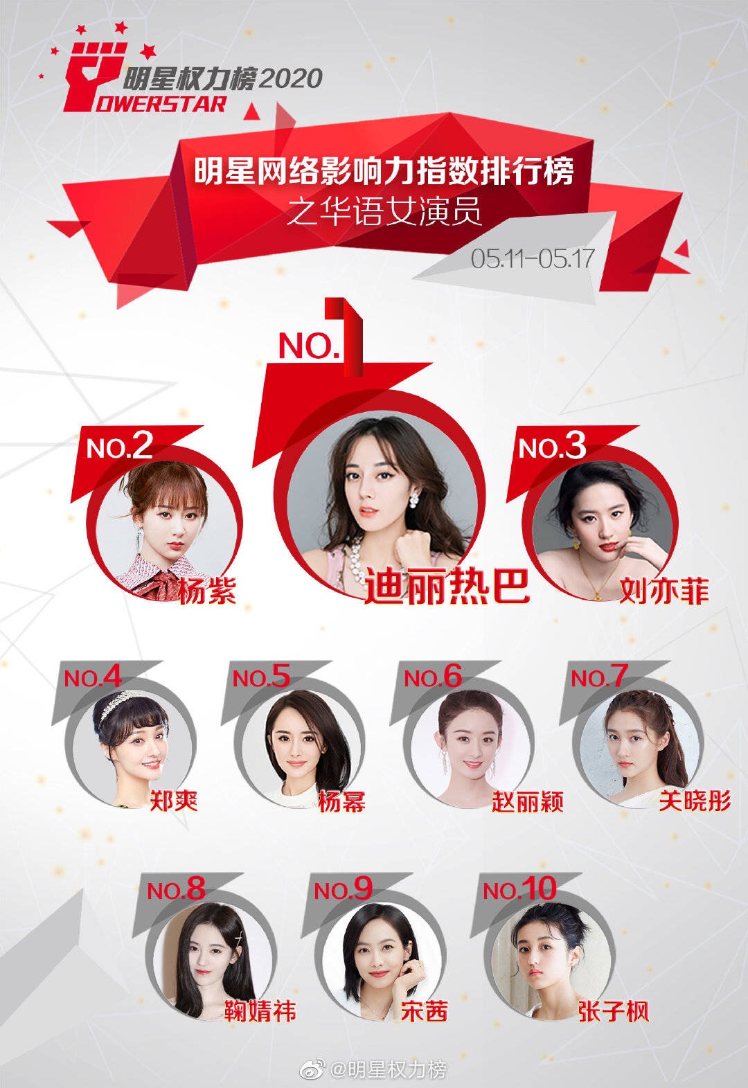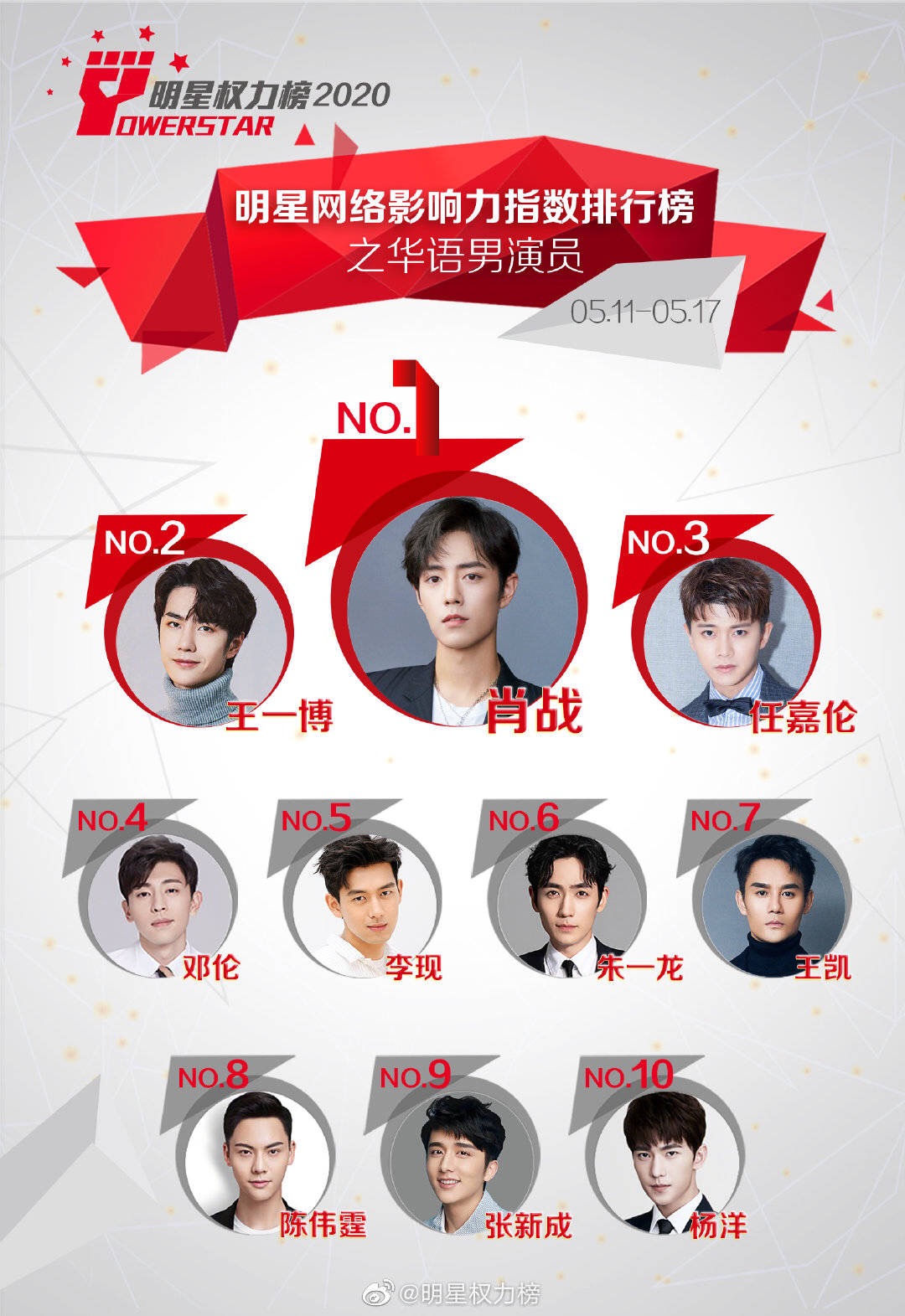 Vào ngày 20/05 vừa qua, Powerstar đã công bố xếp hạng cho những ngôi sao châu Á – người sở hữu chỉ số ảnh hưởng lớn nhất từ ngày 11/05 đến ngày 17/05. Được biết, kết quả này dựa trên thống kê tương tác, bình chọn từ các phiếu bầu của cư dân mạng, người hâm mộ về độ nổi tiếng và sức ảnh hưởng của những nam/nữ diễn viên trên mạng xã hội Weibo ở Trung Quốc trong một tuần. Theo đó, kết quả cuối cùng được cho biết như sau: