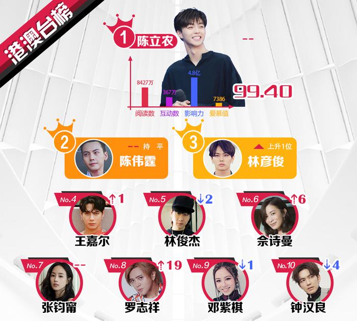 Đến hẹn lại lên, vào ngày 09/10 vừa qua, trang báo Sina tiếp tục công bố Bảng xếp hạng những ngôi sao quyền lực nhất đầu tháng này thông qua mạng xã hội Weibo ở các khu vực Trung Quốc, Hồng Kông, Macao - Đài Loan, các quốc gia châu Á - Thái Bình Dương và châu Âu - Hoa Kỳ. Theo các báo cáo trước đó, kết quả của bảng xếp hạng dựa vào chỉ số đề cập, chỉ số tương tác, lượt xem, chia sẻ, yêu thích và lượng tìm kiếm trên Weibo trong từ ngày 25/09 đến ngày 08/10. Dưới đây là TOP 10 ngôi sao quyền lực: